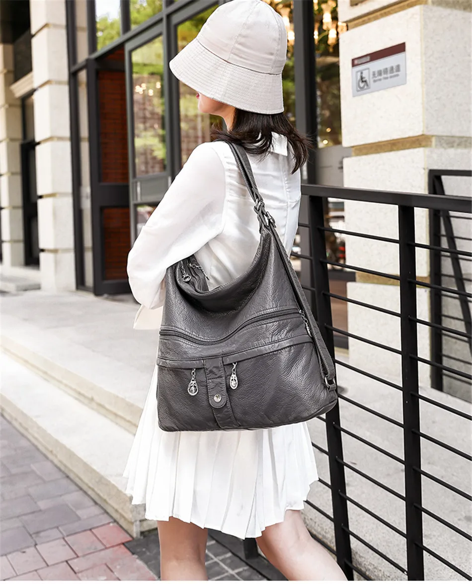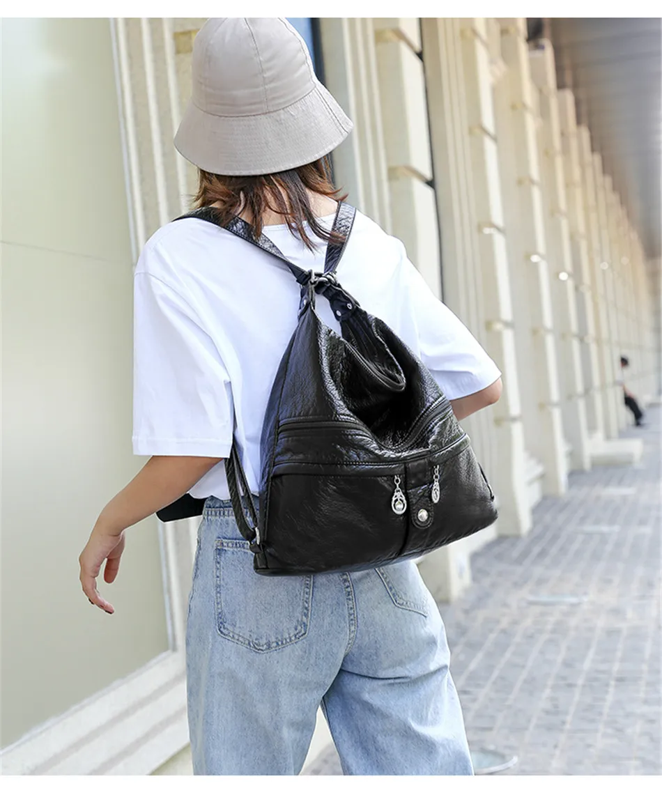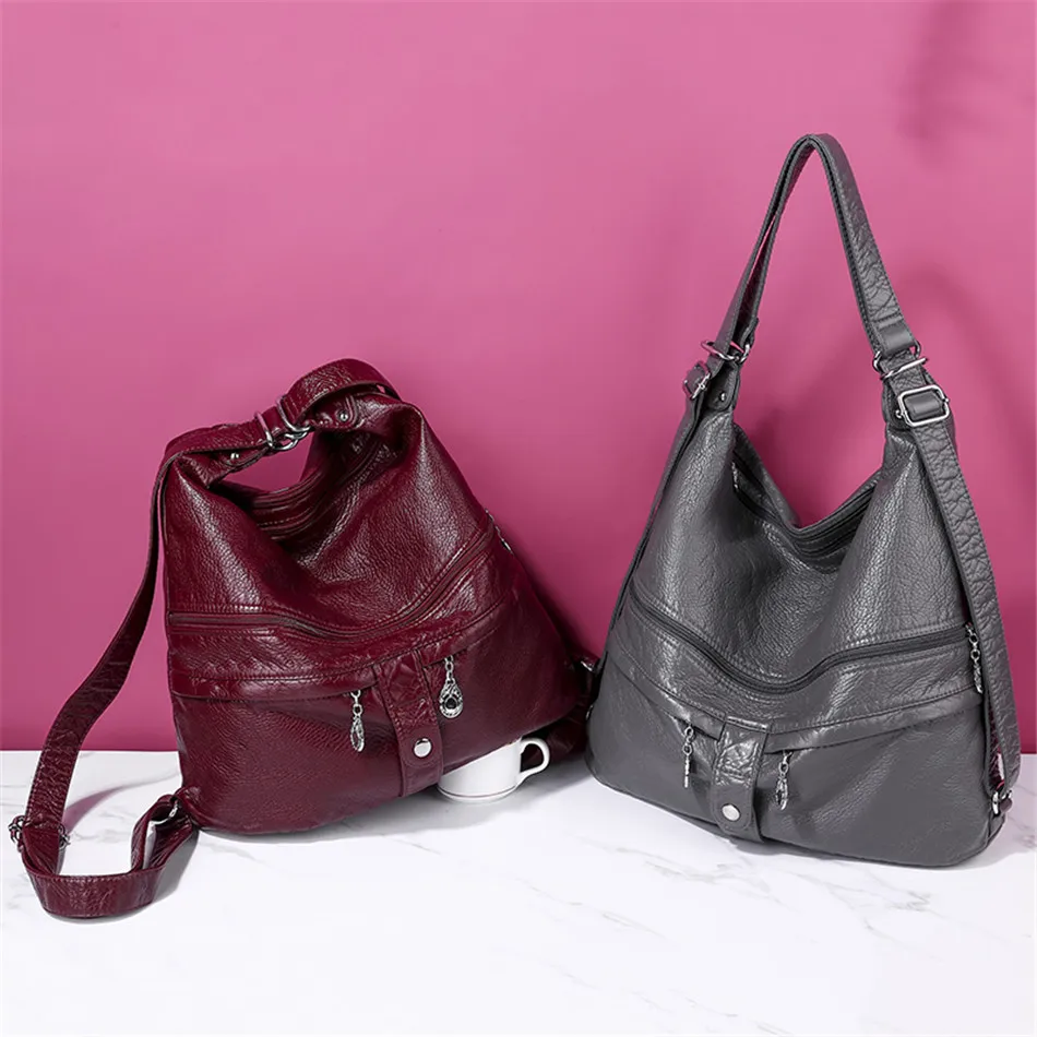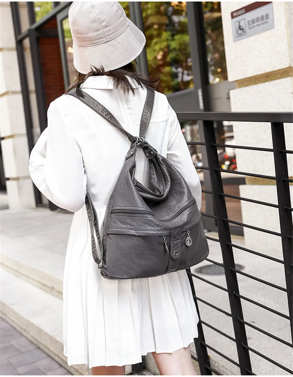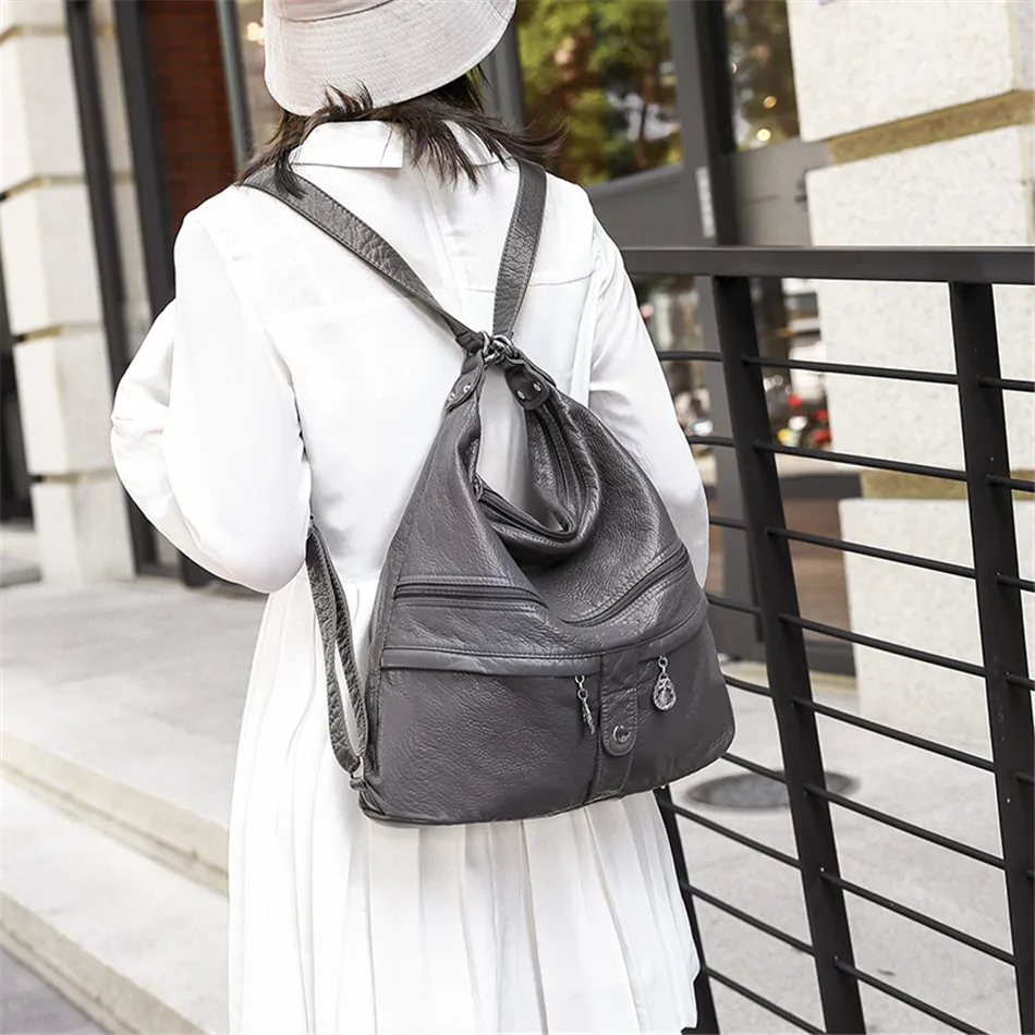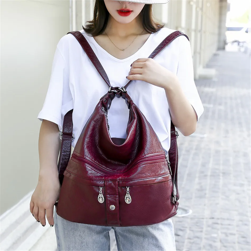 3-in-1 Soft Leather Multifunction Backpack for Teenage Girls Fashion Female Large Capacity School Bag Women Shoulder Bag mochila