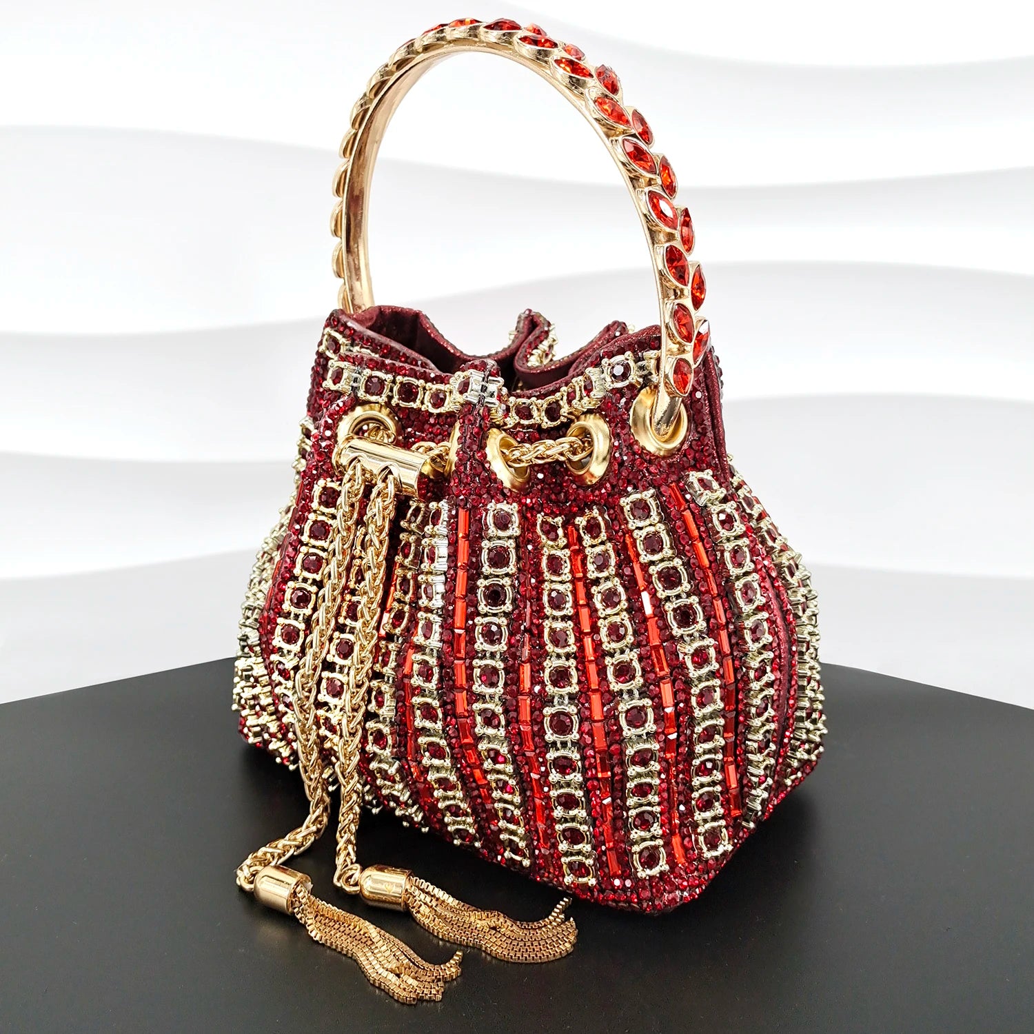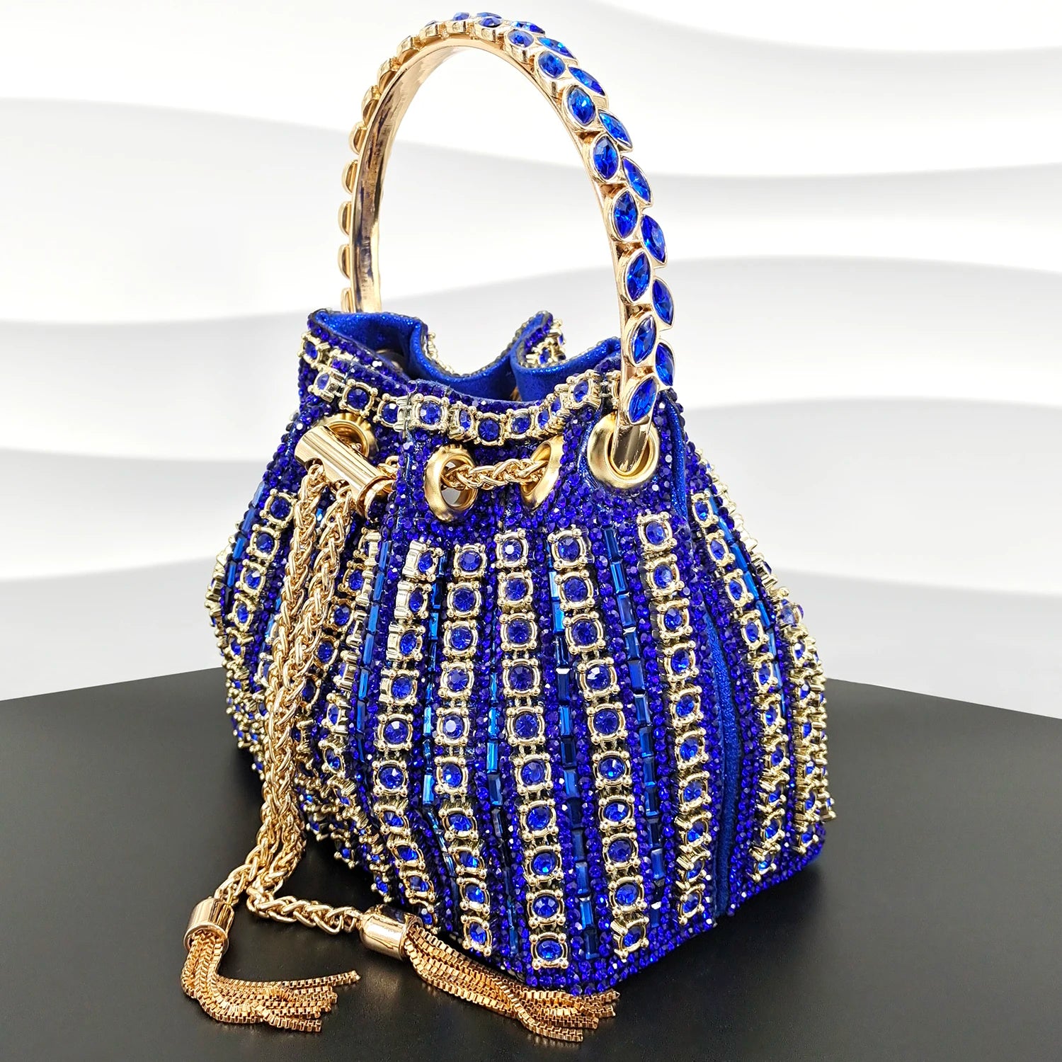 African Fashionable Shiny Handbag Banquet Ladies Bag Full Of Diamonds Semi-Circle Bracelet Bag