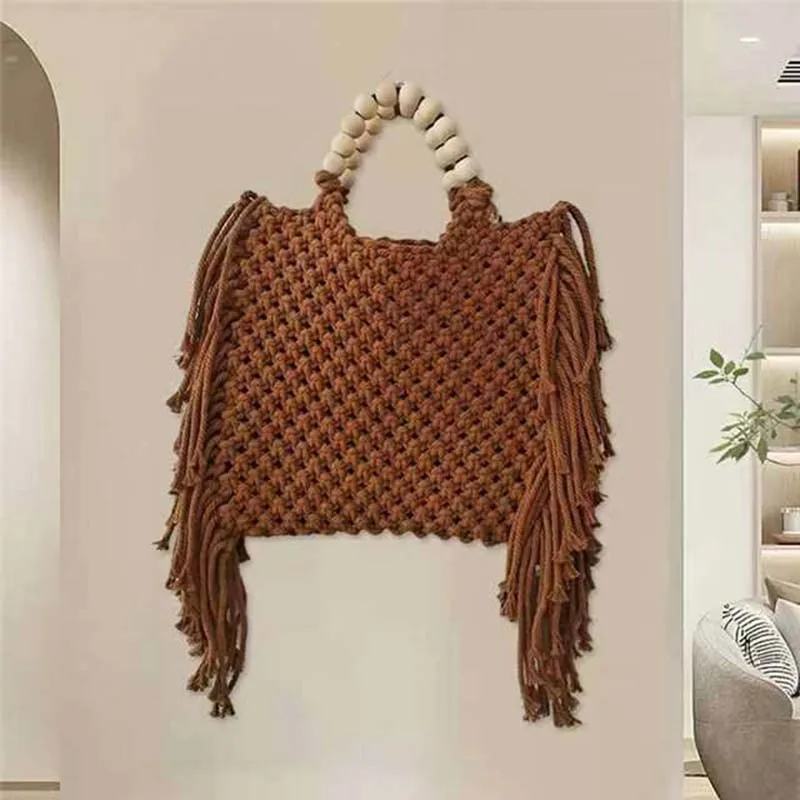 Casual Tassel Straw Shoulder Bag Female Handmade Woven Crossbody Bag Bohemian Kintted Lady Handbag Beach Bag Flap Bag sac
