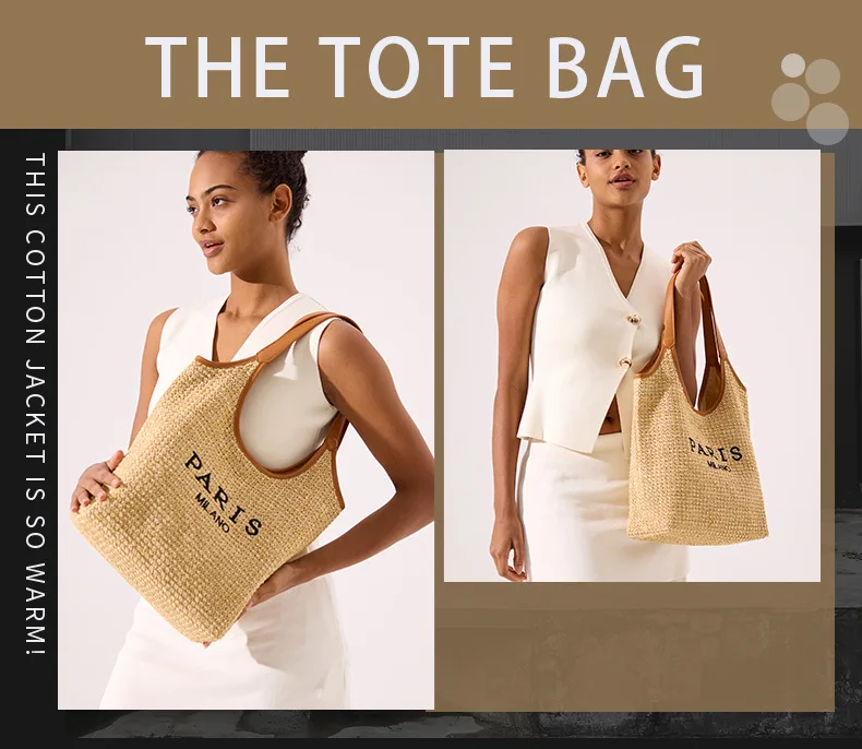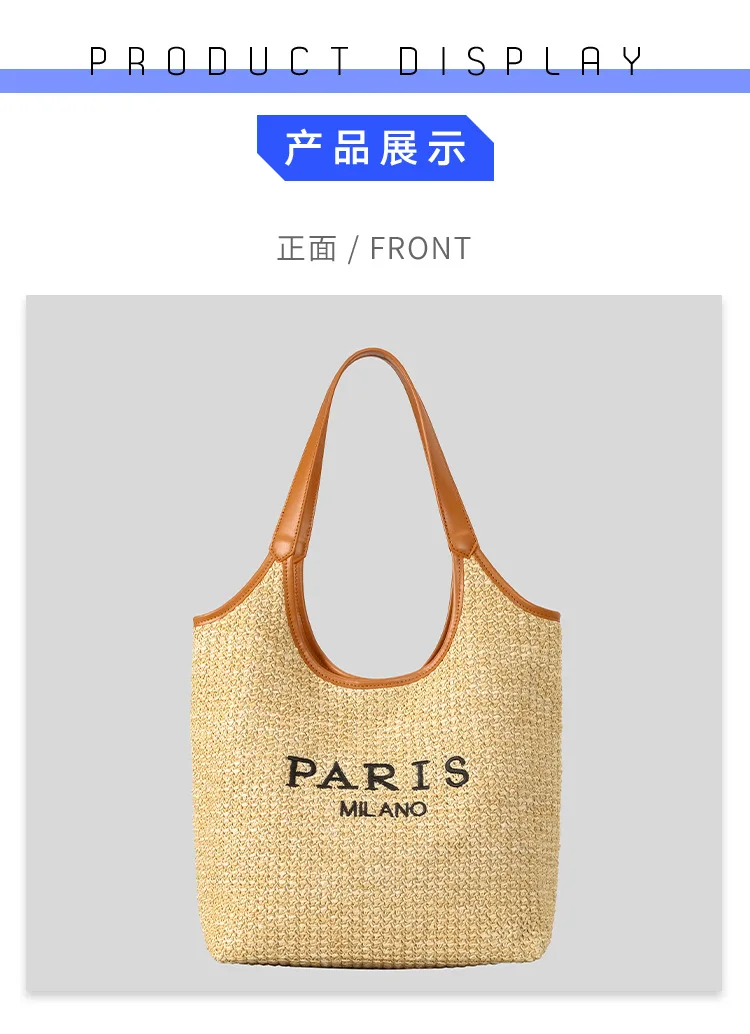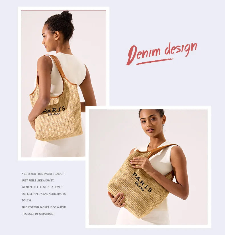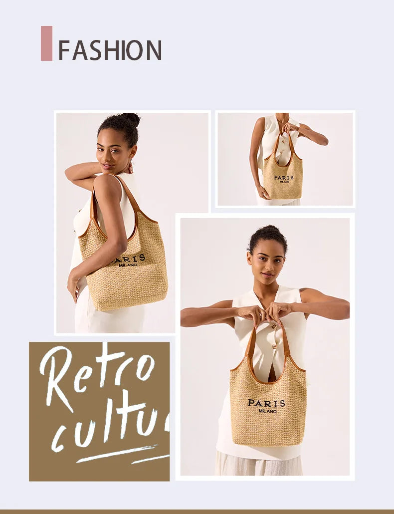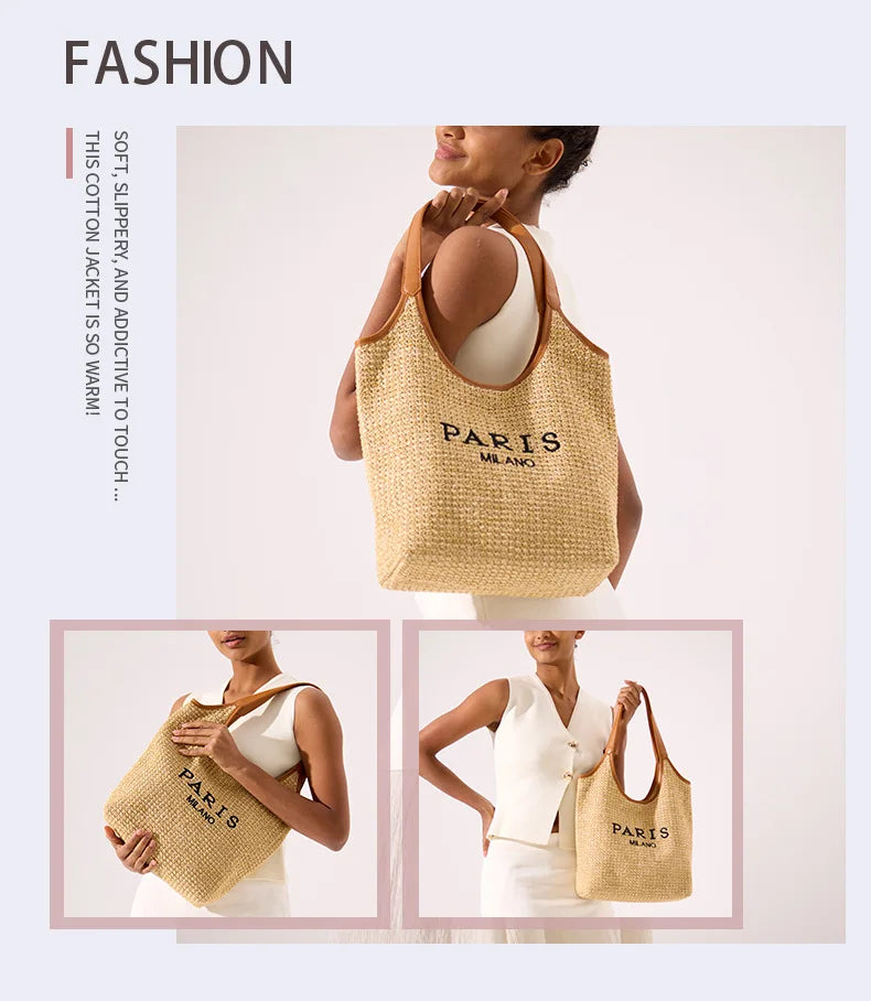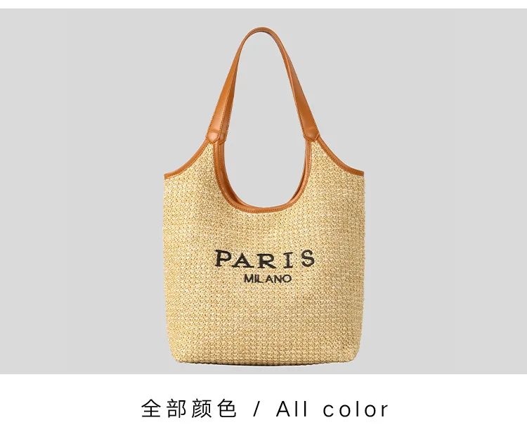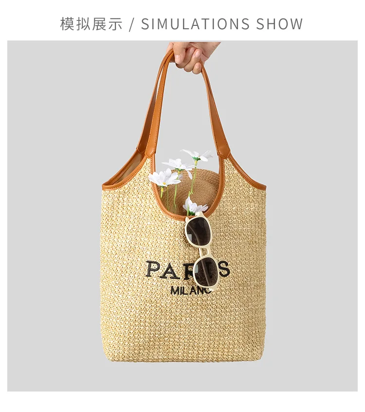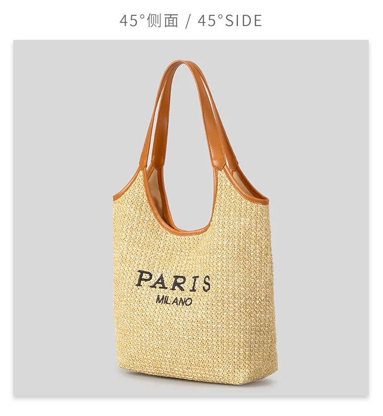 Fashion Letters Pp Straw Women Shoulder Bags Casaul Hobos Woven Handbags Summer Beach Large Capacity Tote Bag Big Shopper Purses