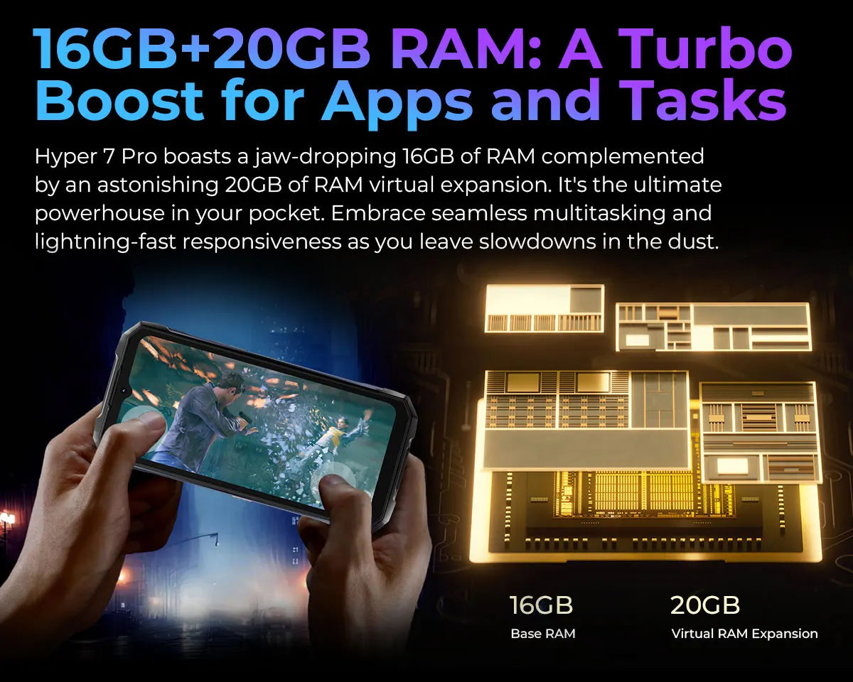 HOTWAV Hyper 7 Pro 36GB(16+20) 256GB 5G Smartphone 200MP 6.6'' FHD+ 120Hz 10800mAh 33W Android 14 Rugged Cell Phone