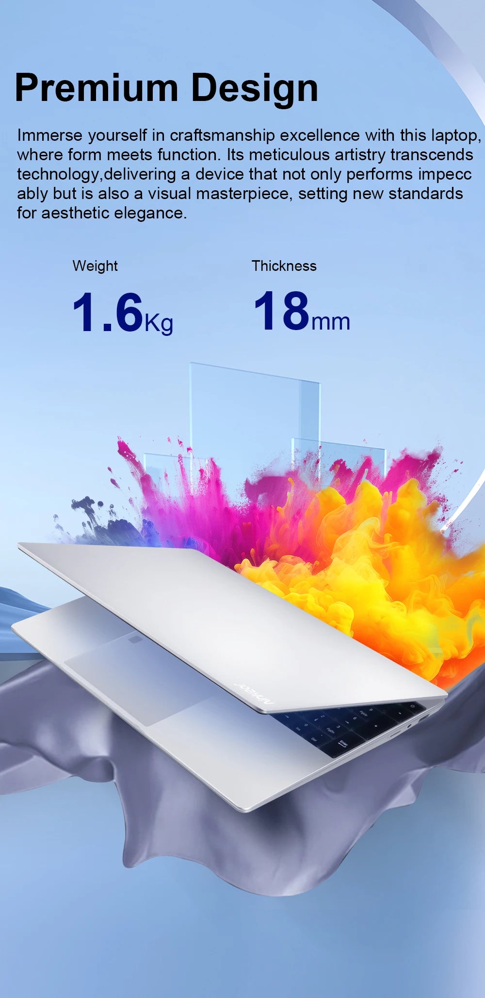 The 15.6-inch FHD IPS full HD display not only provides a clear and delicate visual experience, but also effectively reduces screen flicker through DC dimming technology to protect the user's vision health. Its light and thin design weighs only 1679g and is as thin as 18mm. Whether it is traveling around the campus or carried to a cafe, library or office, it can be easily carried with you without burden.