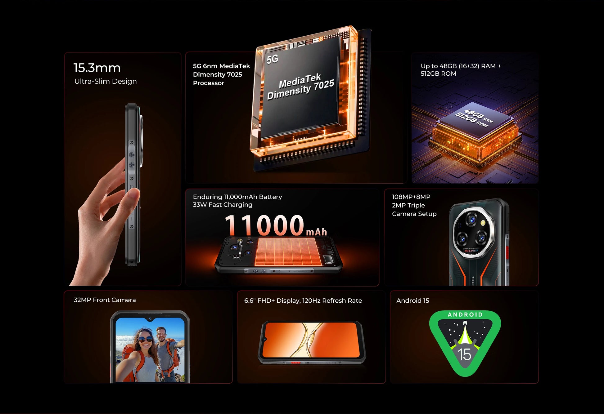 Oukitel WP55 Pro 11000mAh Rugged Smartphone 5G 11000mAh 48GB+512GB Andiron 15 64MP 33W Fast Charging NFC Cell Phone