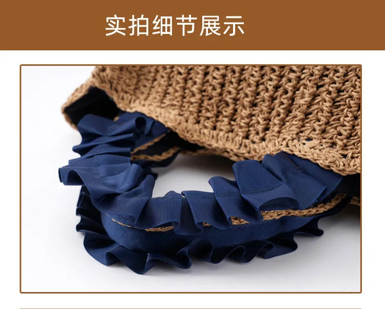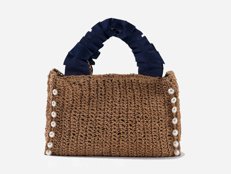 Pearls Straw Bags for Women Bohemian Ruched Handle Handbags Summer Woven Tote Bag Handmade Travel Beach Bag Small Shopper 2024