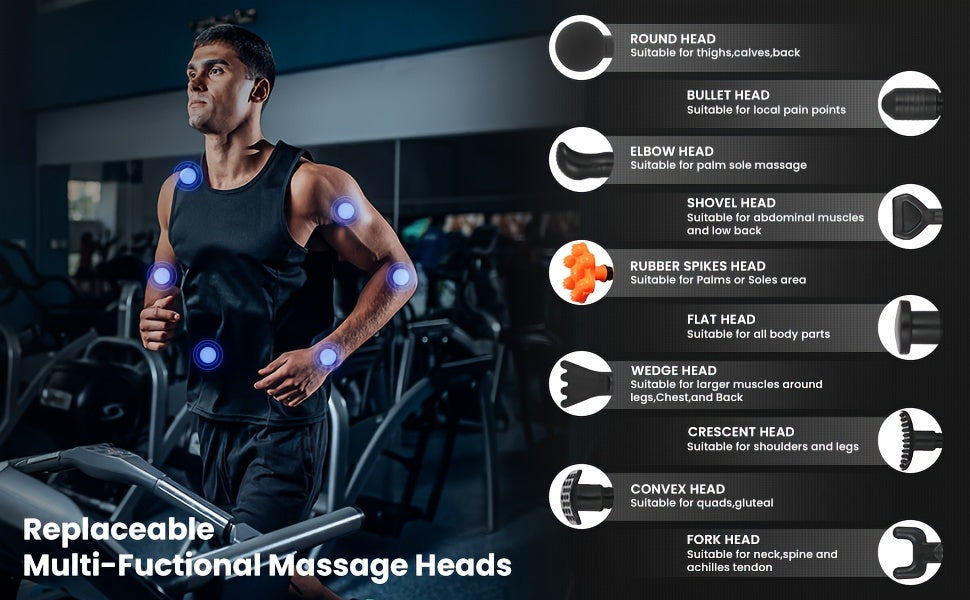 【10 PROFESSIONAL MASSAGE HEADS】SEJOY deep tissue massage gun comes with 10 interchangeable massage heads, suitable for different parts of the body, you can reach every muscle and meet all your muscle relaxation needs. Massage heads in different shapes can be used for different muscle groups and provide targeted therapy for quick recovery.