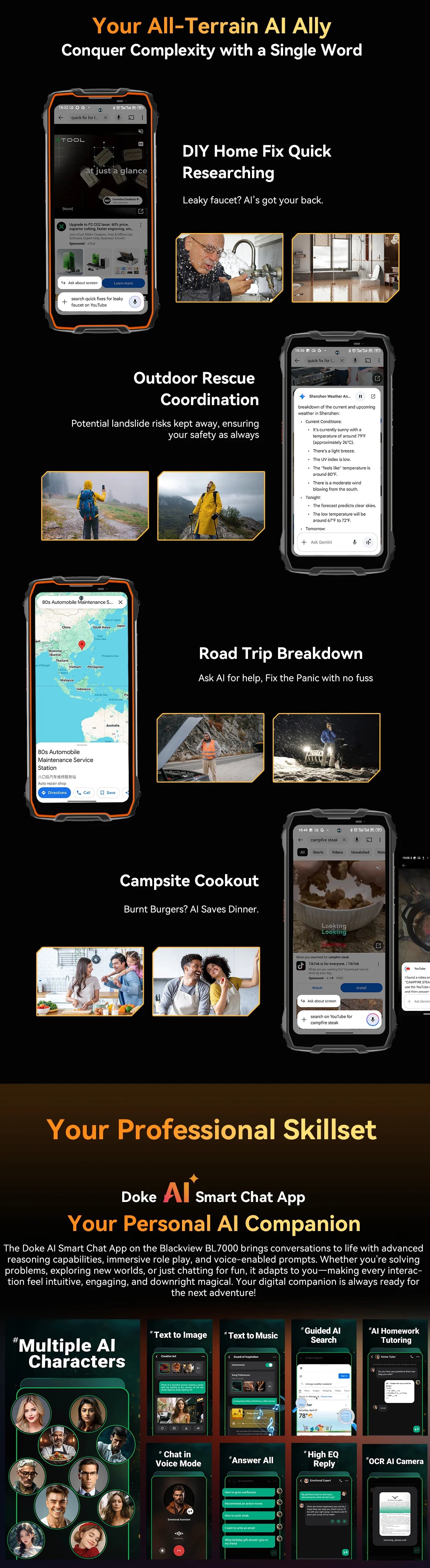 BLACKVIEW BL7000 5G AI Rugged Phone Deepseek GPT Android 15 Smartphone, 6.78" HD+2.4K Display 120Hz, 24(8+16)GB 256GB, 7500Amh