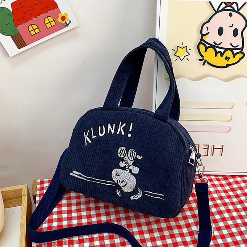 Corduroy Cartoon Shoulder Bag Cute Embroidered Handbag Women's Casual Crossbody Bag Adjustable Shoulder Straps