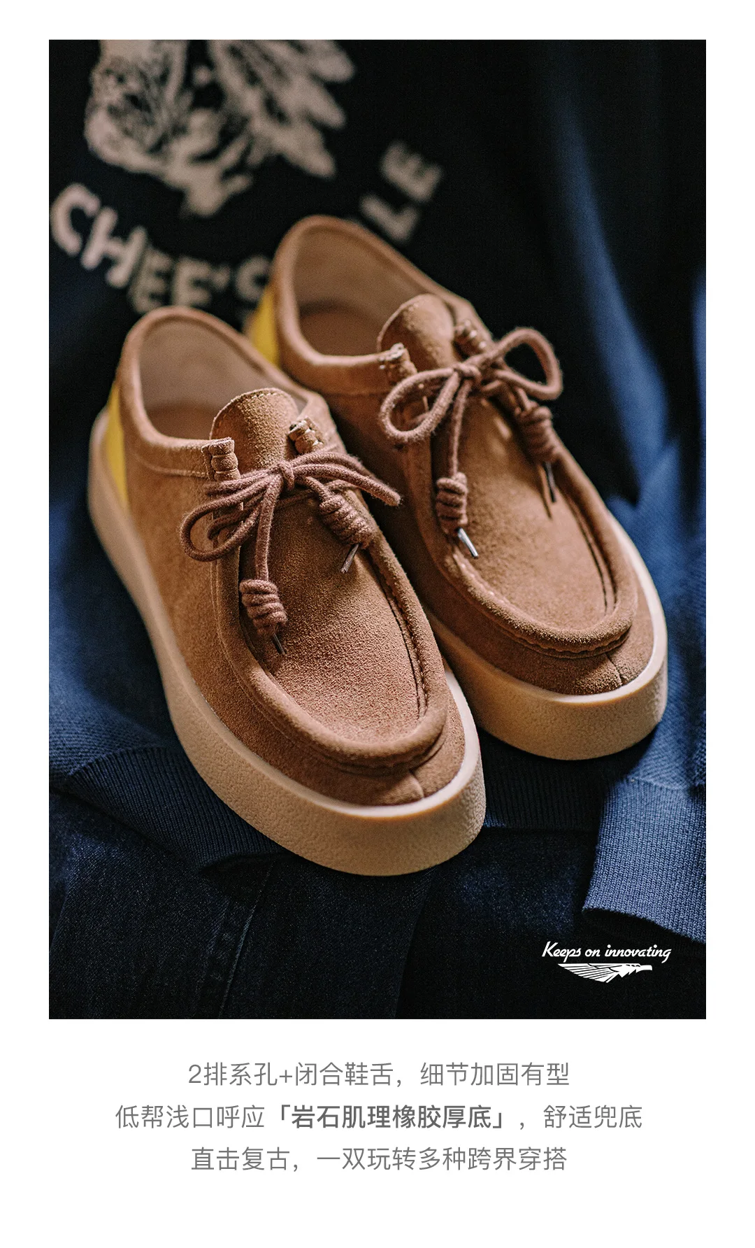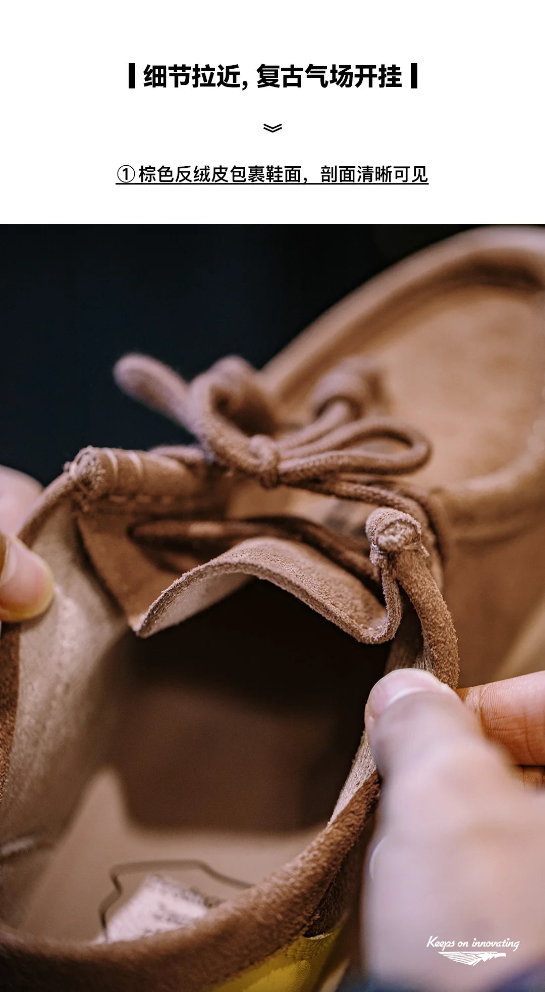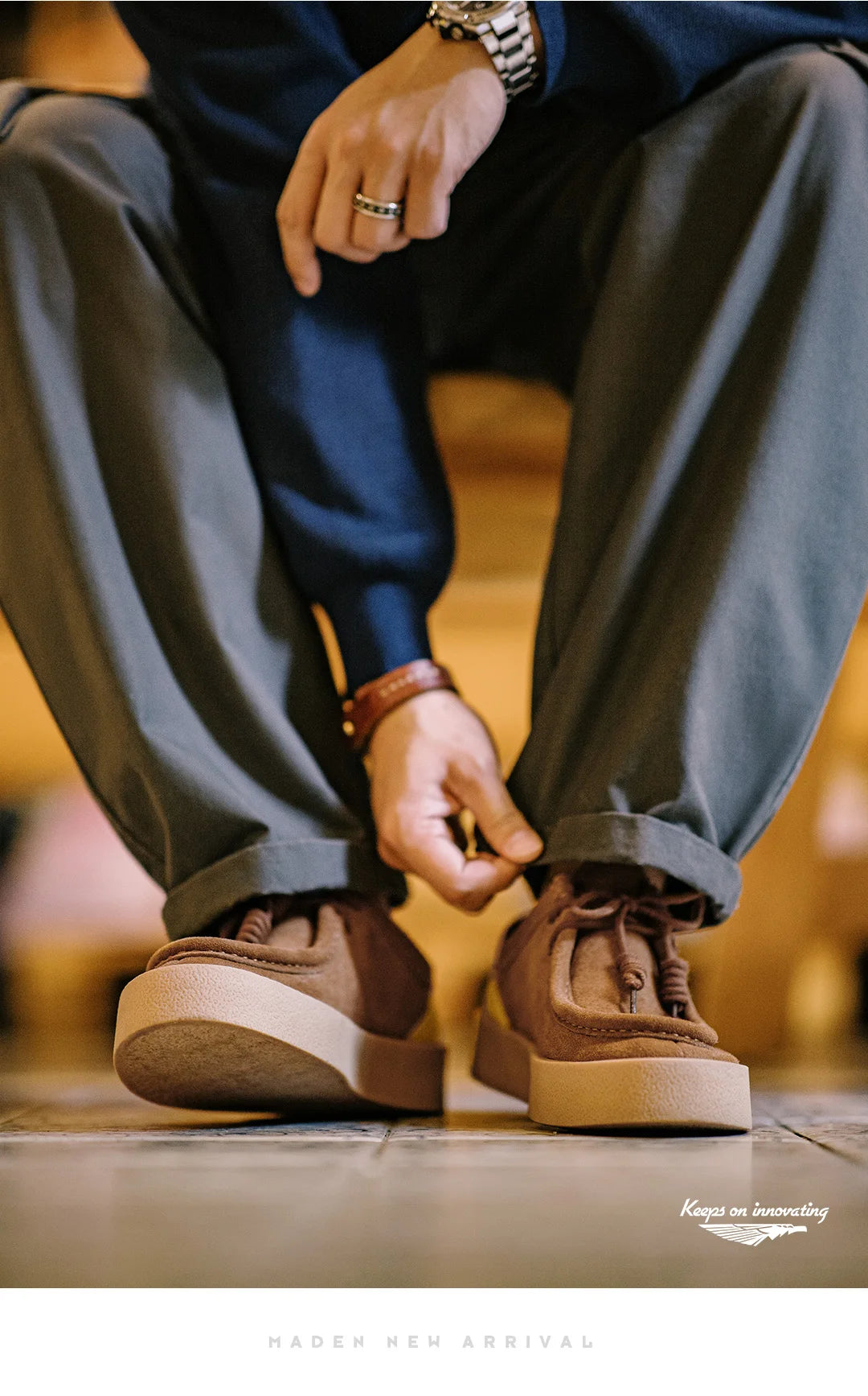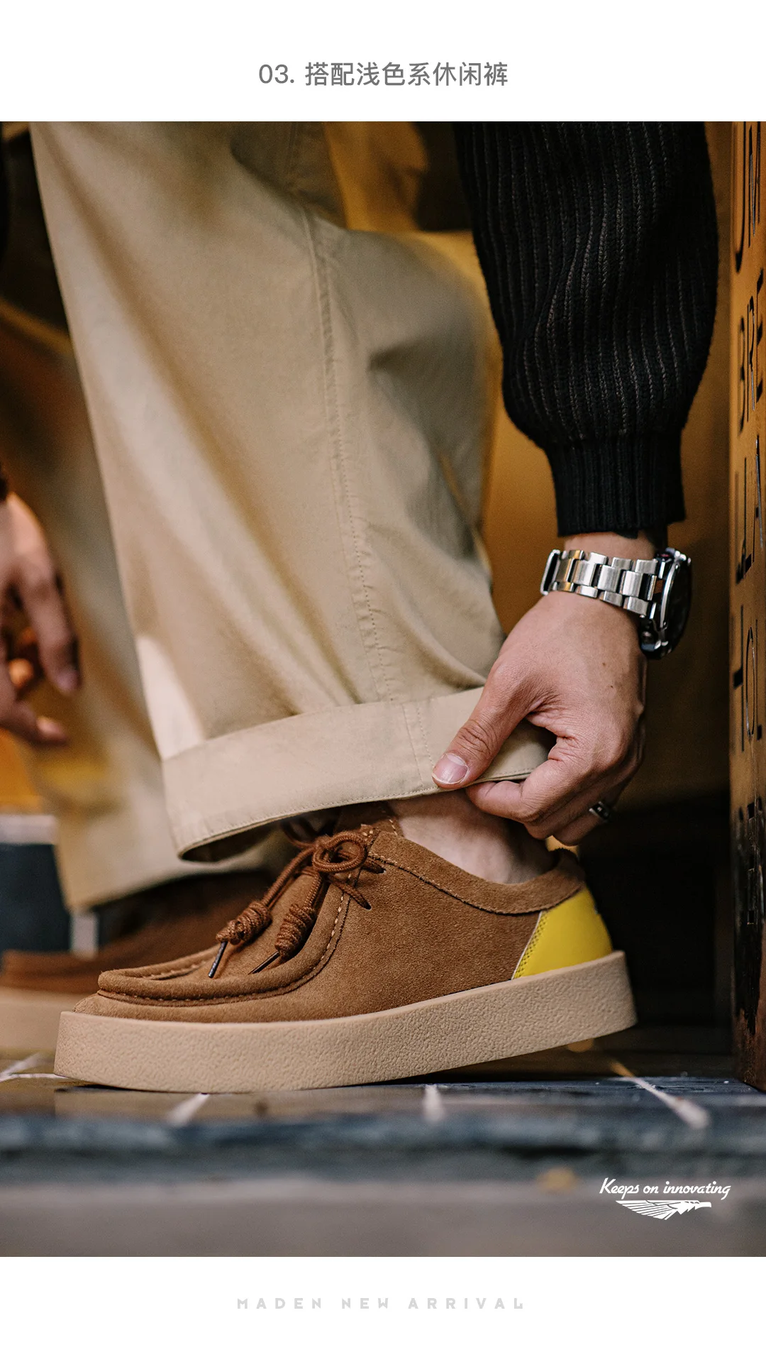 Maden Vintage Thick-Soled Patchwork Leather Shoes Low-Cut Casual Ankle Boots Versatile Dress Shoes for Men's Autumn and Winter