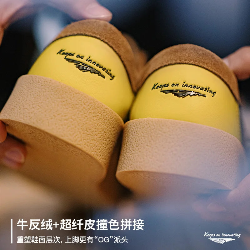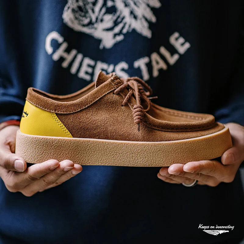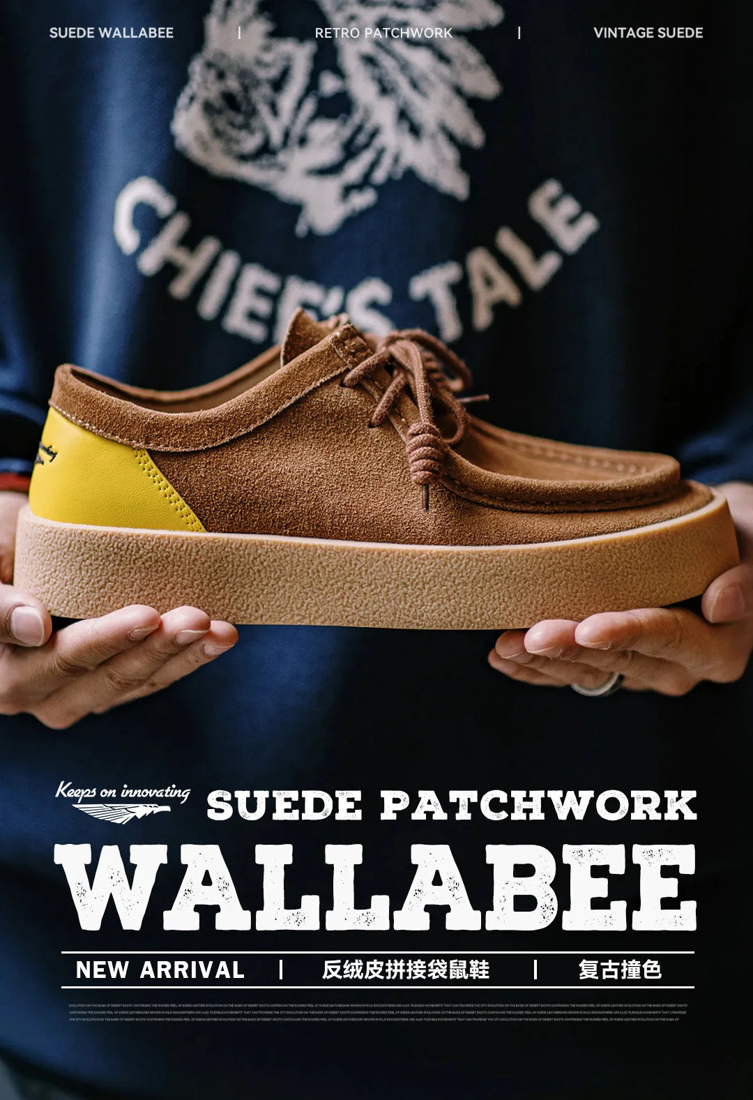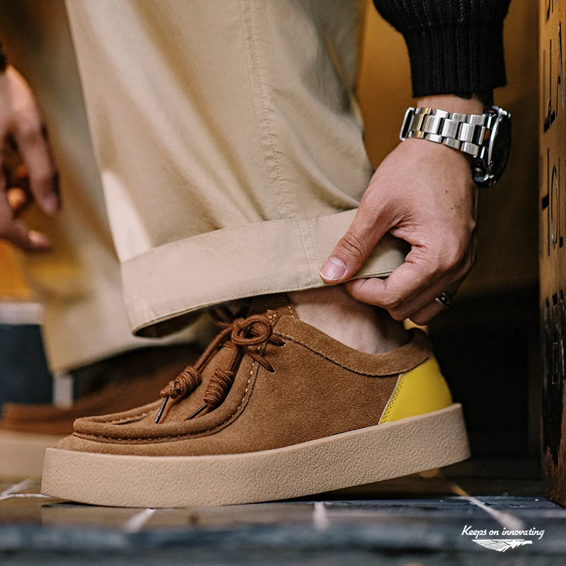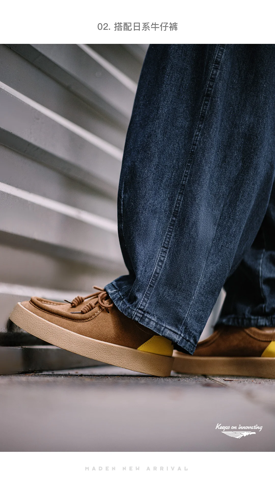 Maden Vintage Thick-Soled Patchwork Leather Shoes Low-Cut Casual Ankle Boots Versatile Dress Shoes for Men's Autumn and Winter