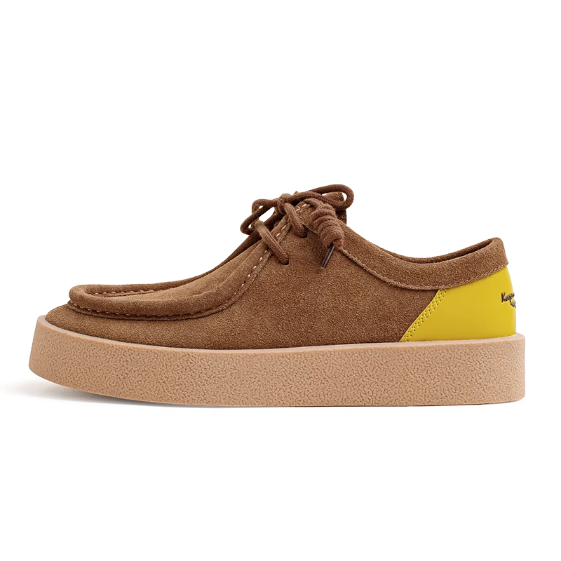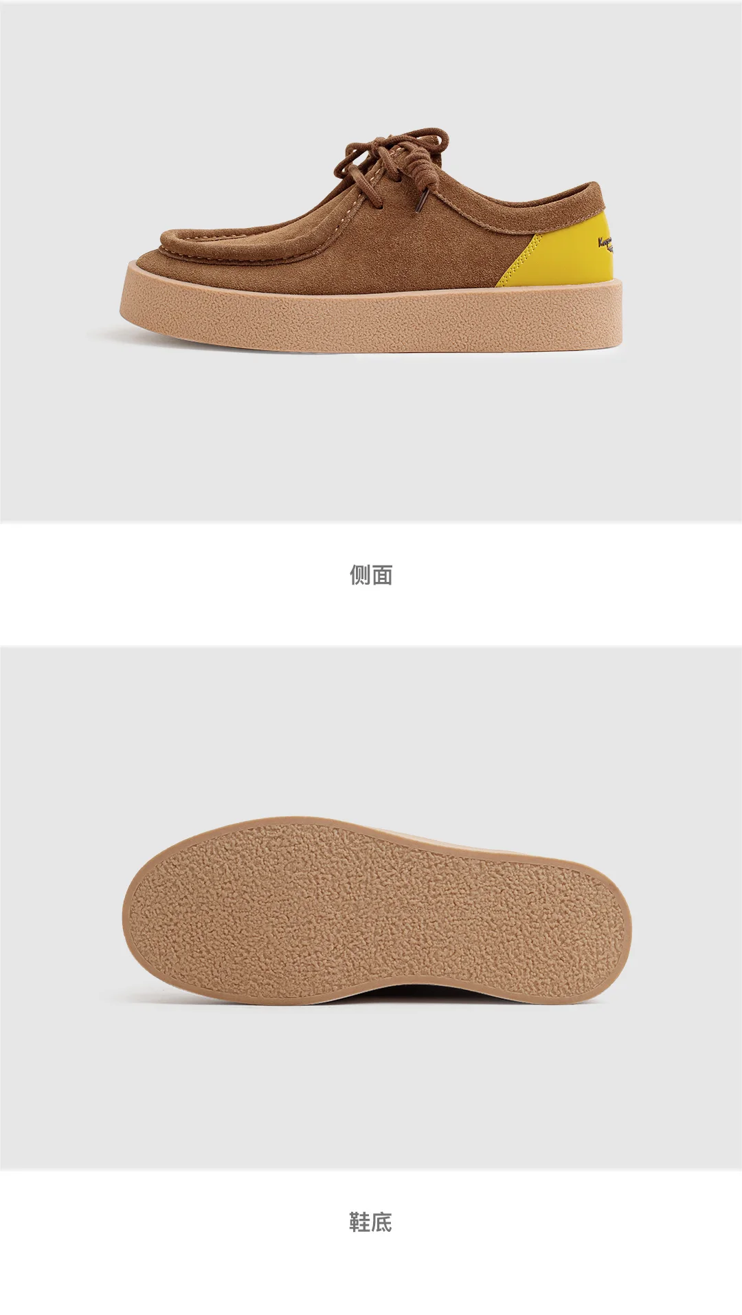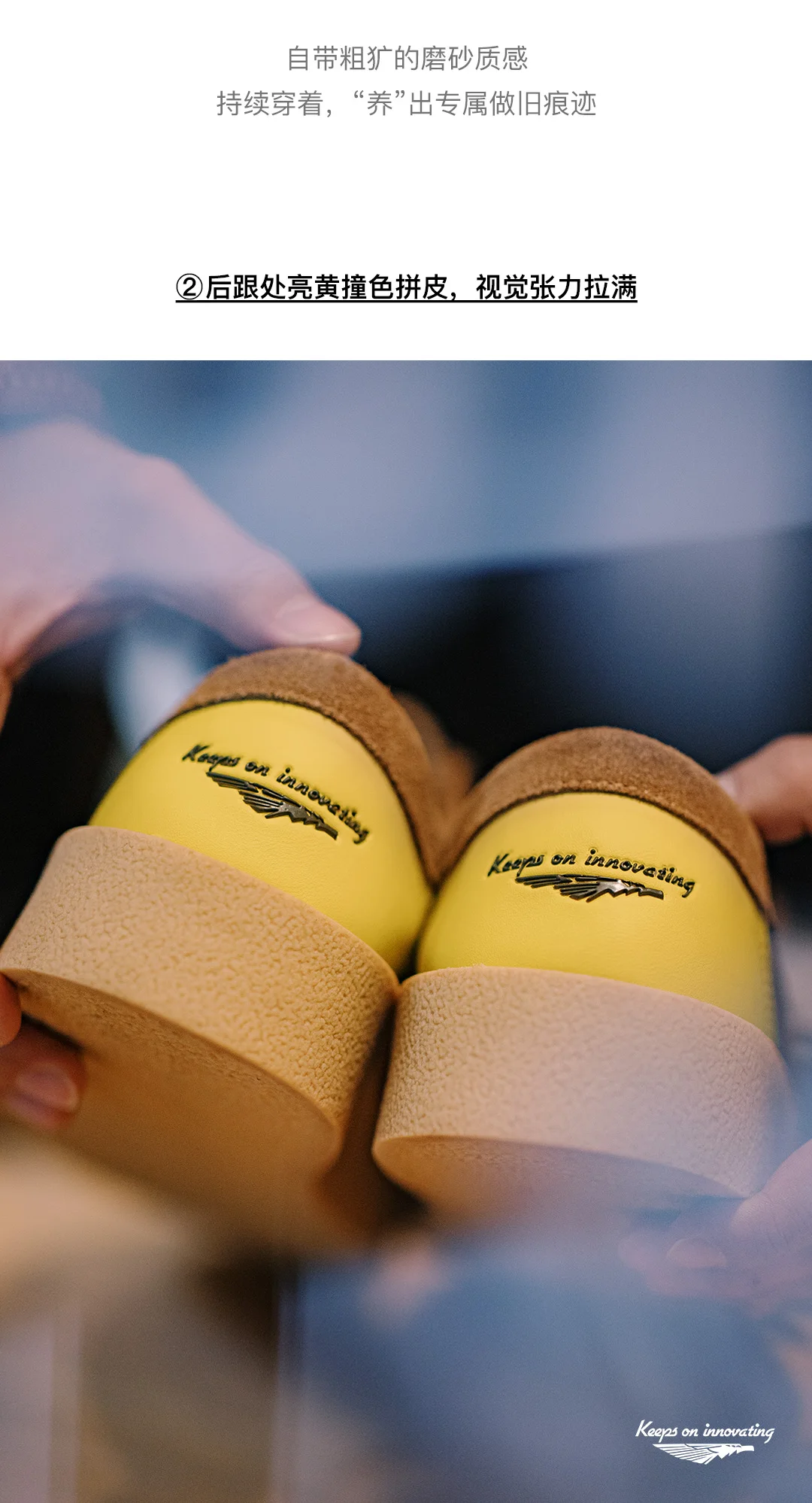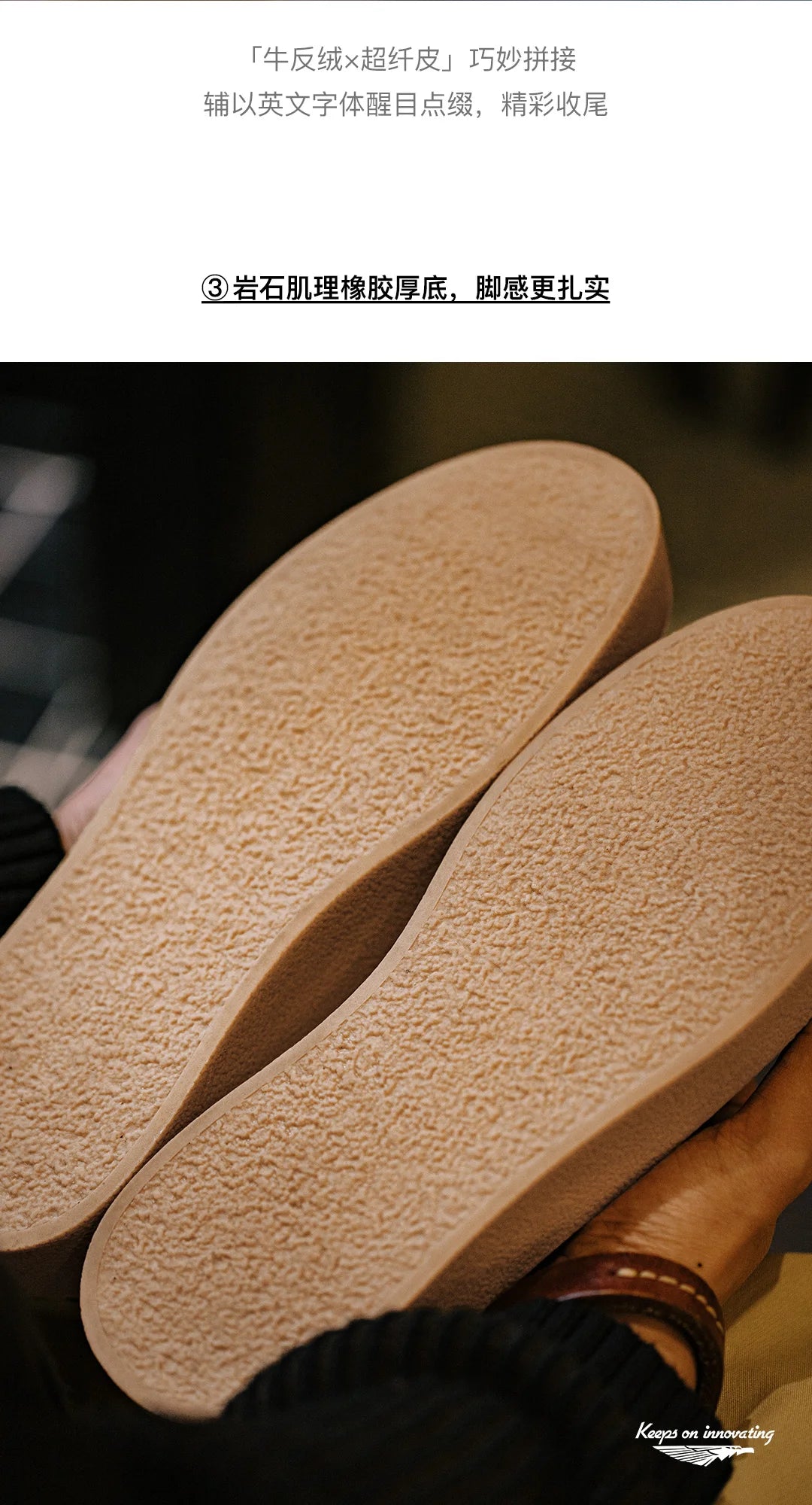 feature 4: The heel of the shoes features a color-blocking splicing design with cow suede and microfiber leather