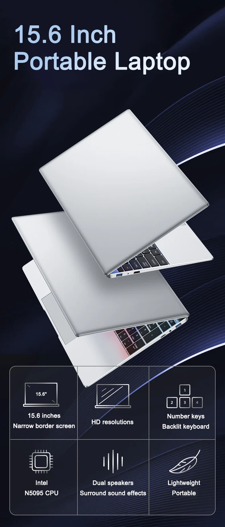 Original 15.6" N5095 laptop, Windows 11 Professional 32GB 2048 GB fingerprint unlock backlit keyboard portable office laptop