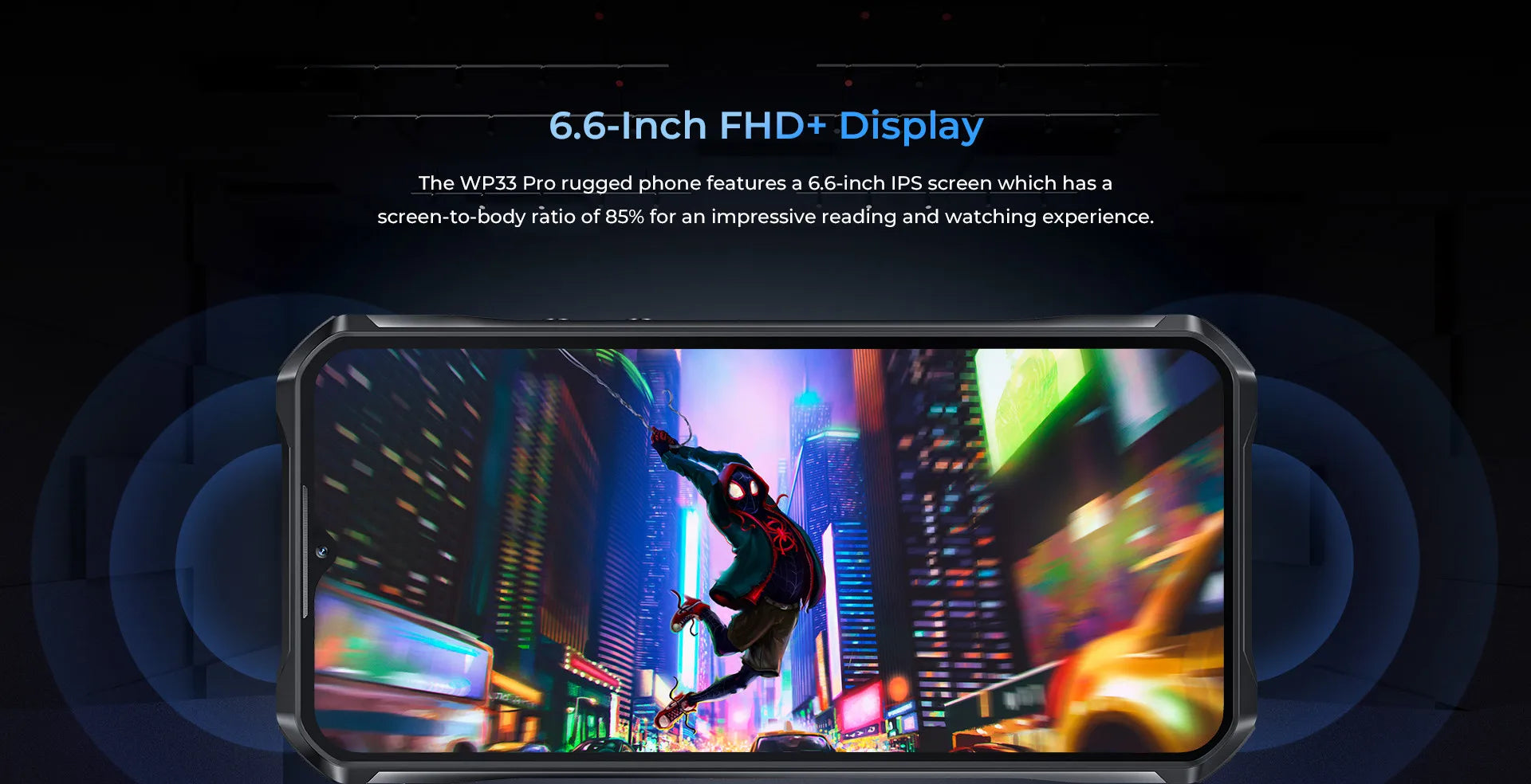 The WP33 Pro rugged phone features a 6.6-inch LCD screen which has a screen-to-body ratio of 85% for an impressive reading and watching experience.