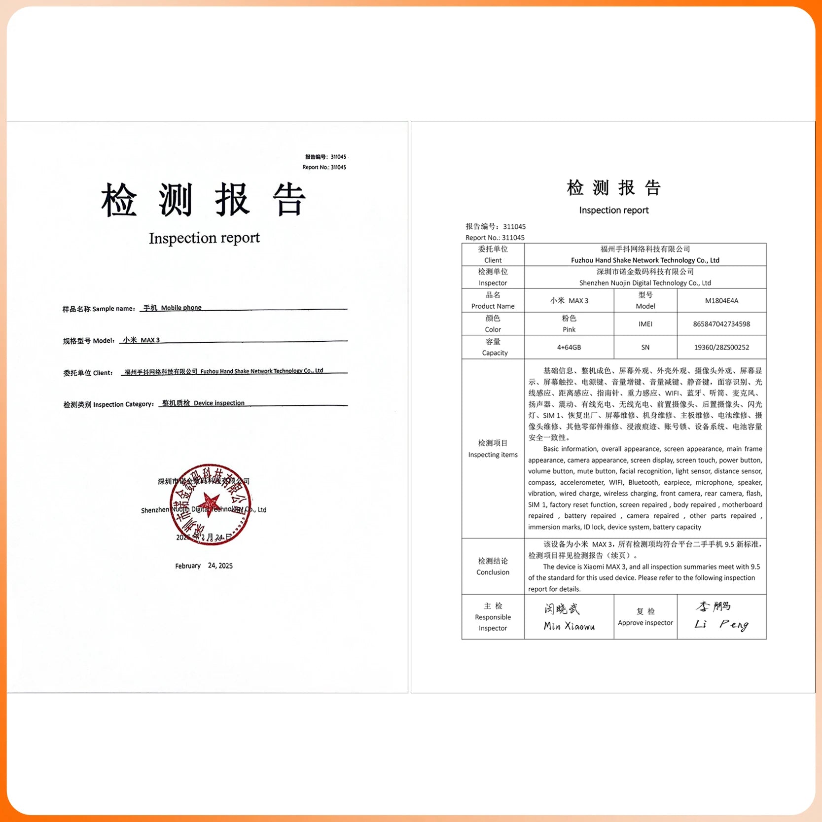 The video is Xiaomi MAX 3, and all inspection summies meet with 9.5 of the standard for this used service. Please refuse to the following inspection report for details.