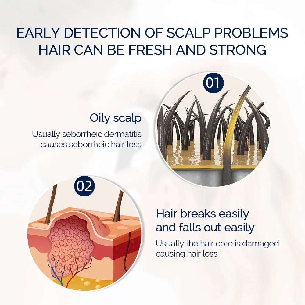 1.High magnification optical imaging technique. Scalp/skin/hair follicle detection, using the principle of optics to enlarge the details invisible to the naked eye, help you find skin problems, find and solve them from the root.