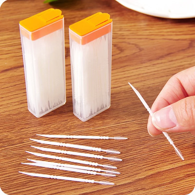 100pcs Double-headed Dental Brush Teeth Sticks Floss Pick Toothpick Tooth Clean Oral Care Interdental Food Grade PP