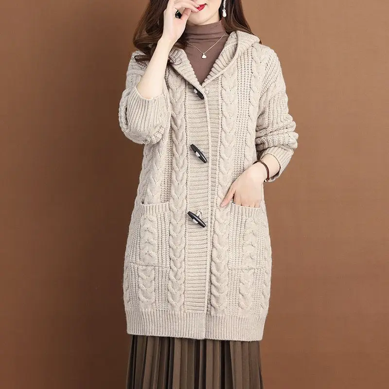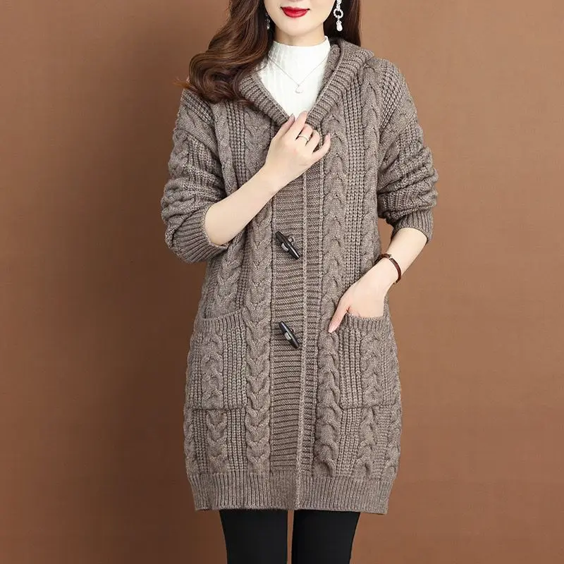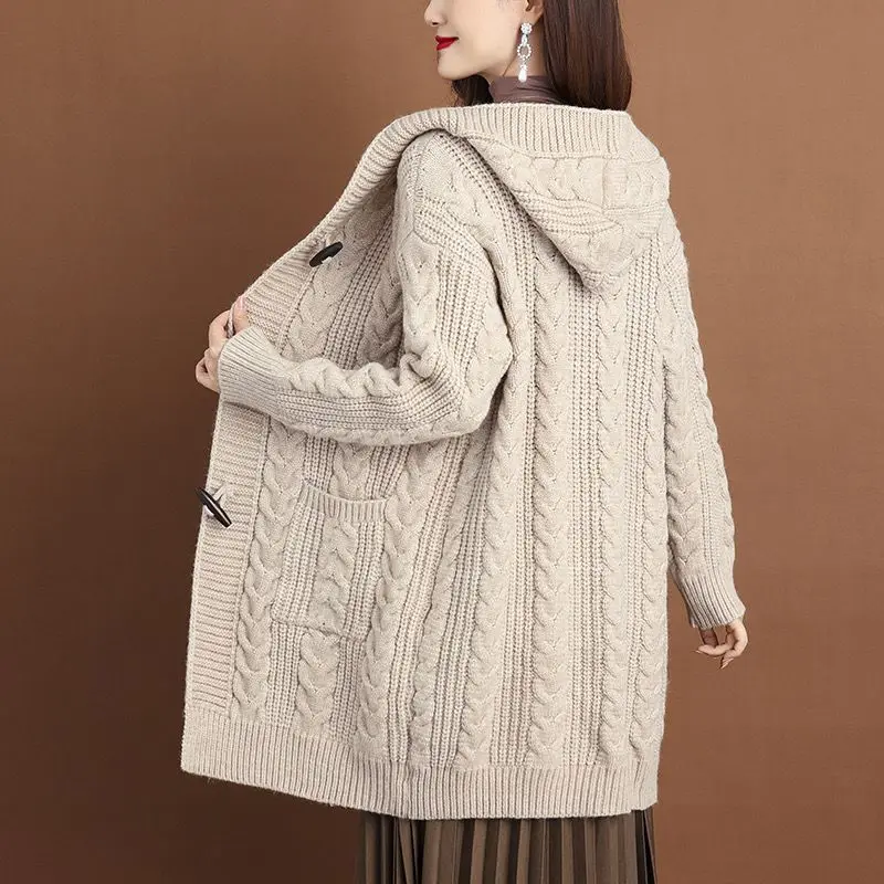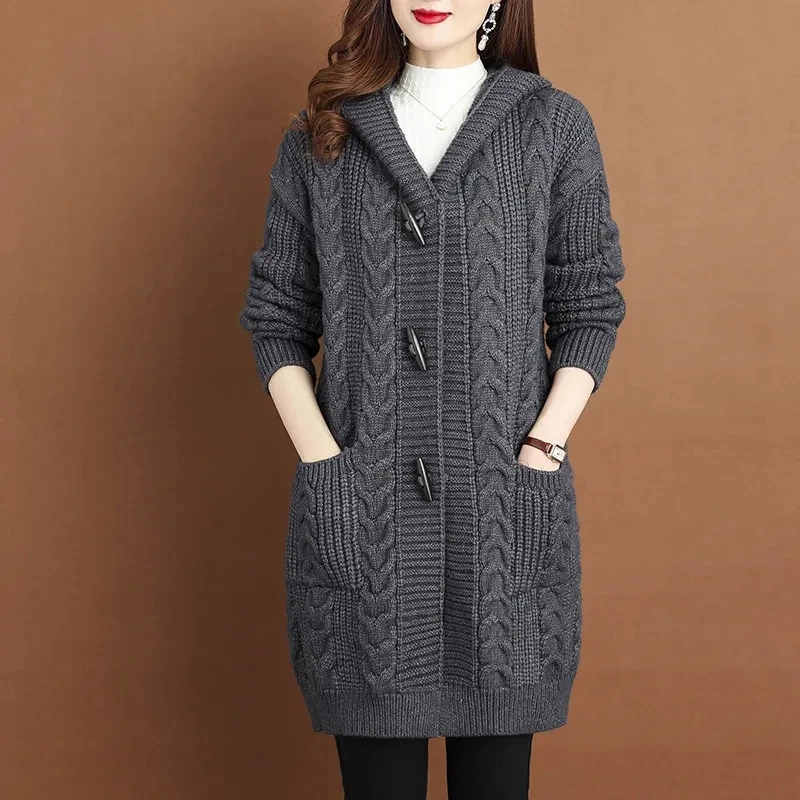 2024 Autumn Winter Thicken Sweaters5XL Large Size New Fashion Hooded Knitted Outerwear Women's Cardigan Sweater Knitting Jacket