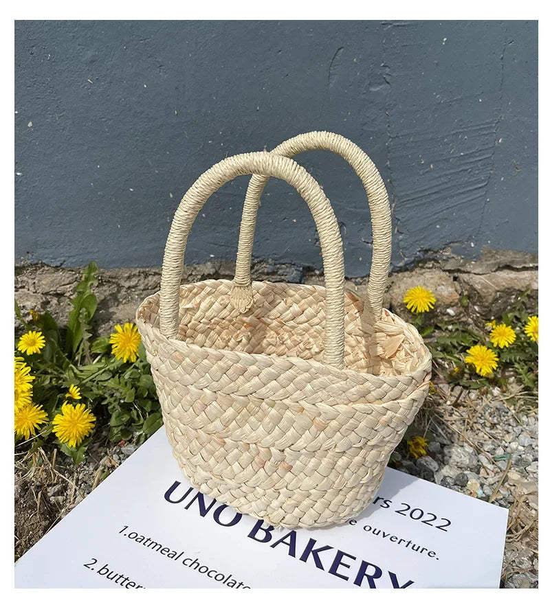 2024 New Straw Bag Portable Cute Korean Style All-match Small Basket Shopping Purse Summer Cool Retro