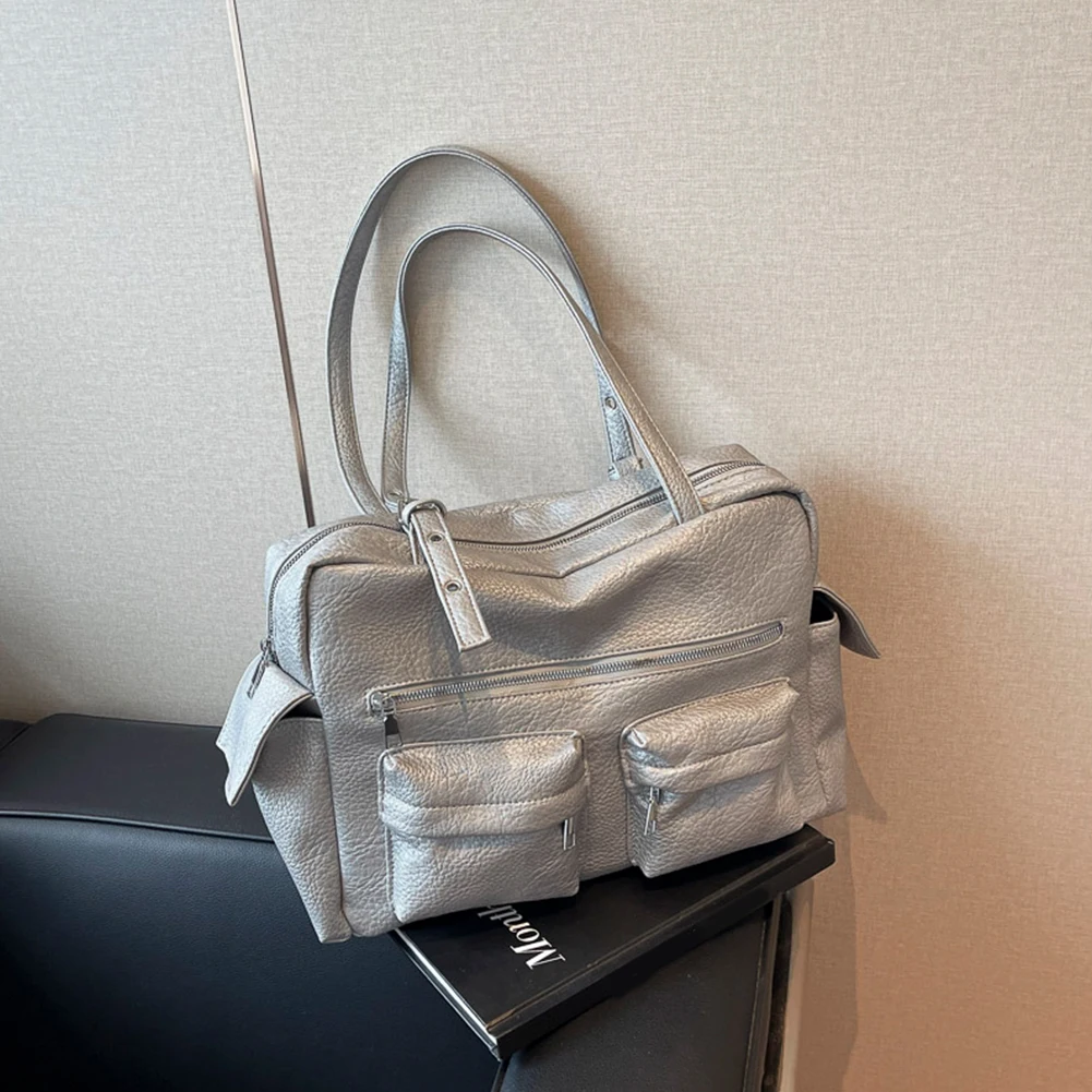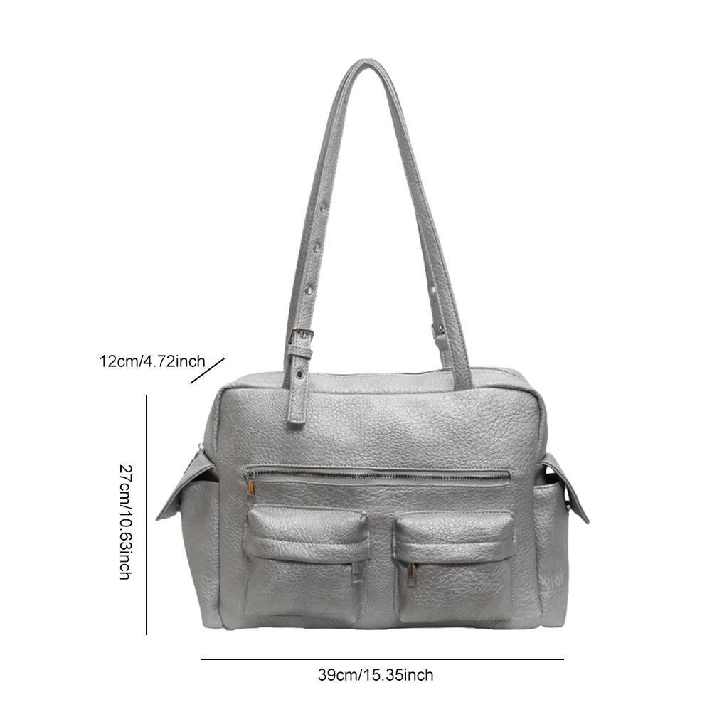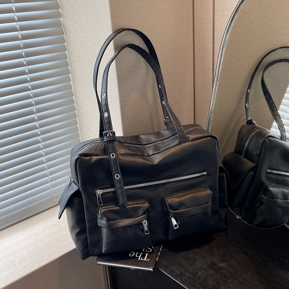 2024 Women PU Leather Shoulder Bag Multi-Pockets Underarm Bag Solid Versatile Commuting Handbag Adjustable Strap Armpit Tote Bag