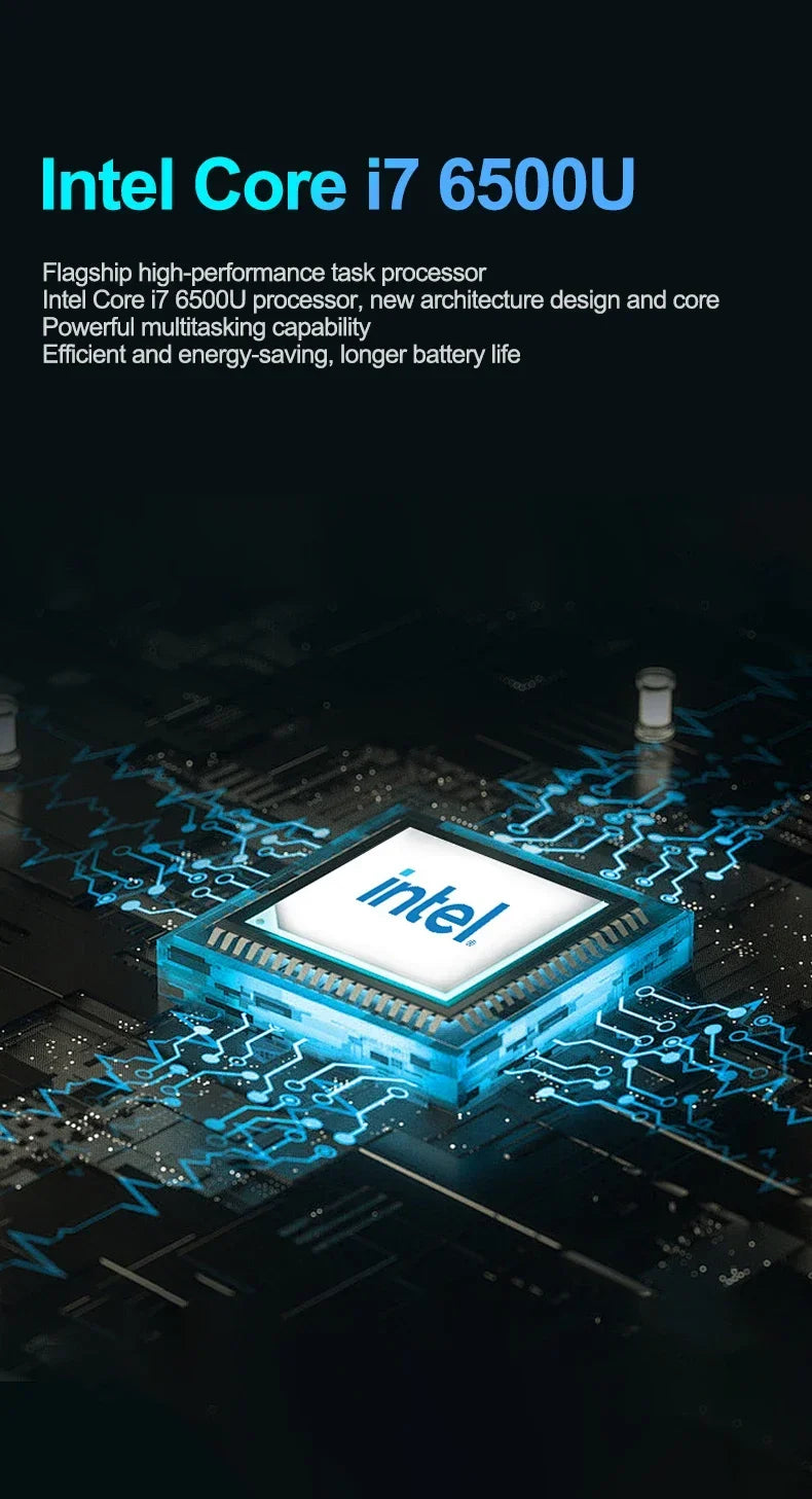 3) Intel i7-6500U quad-core quad-thread processor up to 2.4GHz,