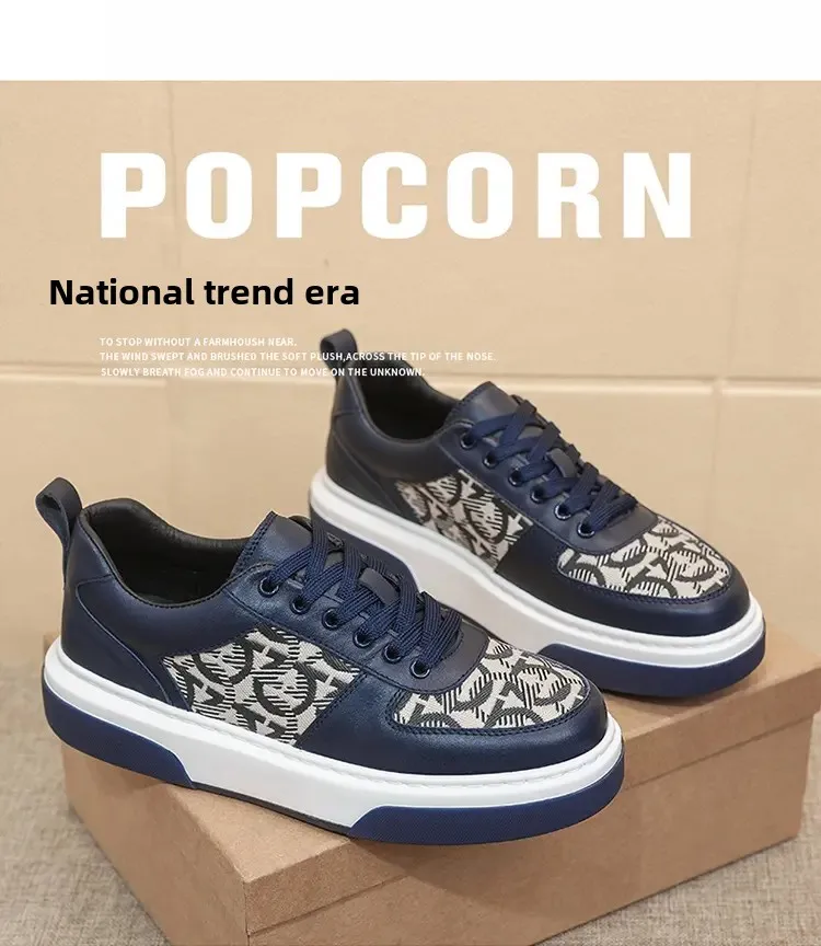 2025 Spring New Men's Shoes All Fashion Increase Board Shoes Senior Sense Retro Bar Fashion Shoes Non-slip Street Casual Shoes