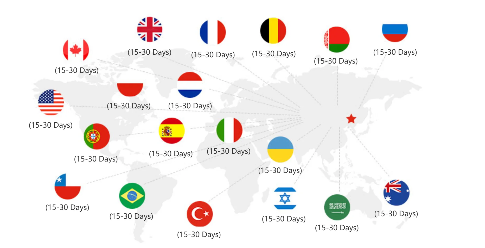 C:)Delivery time depends on destination and other factors, Usually Shipping time Within15-45 Working days Will Arrival , if you can't get it on time ,Contact us trouble extended date and check the tracking information.