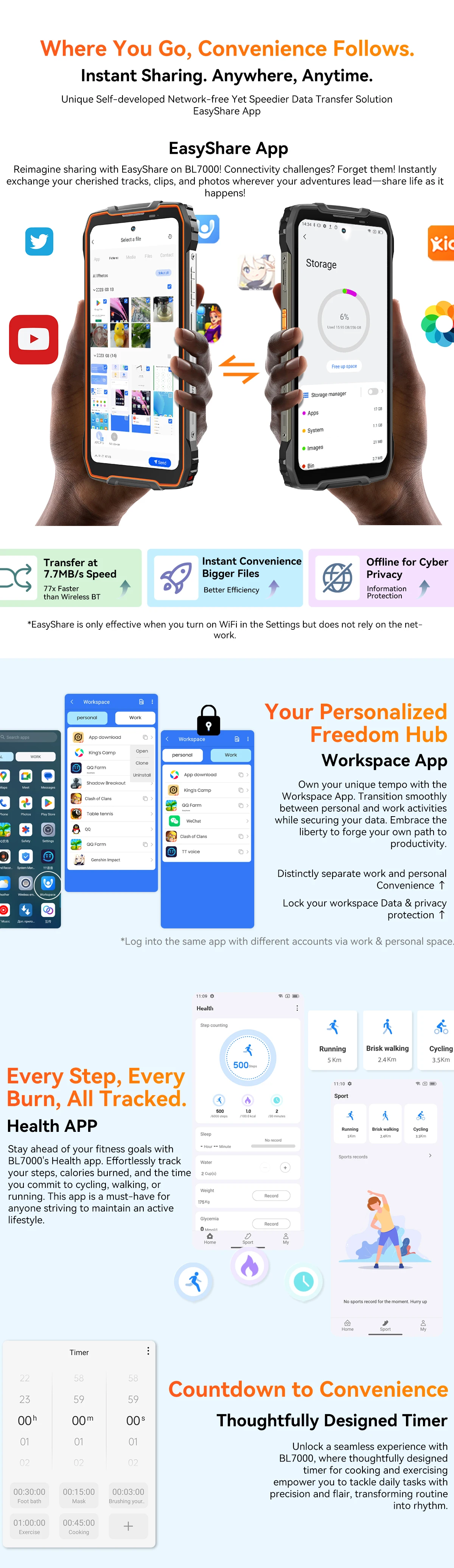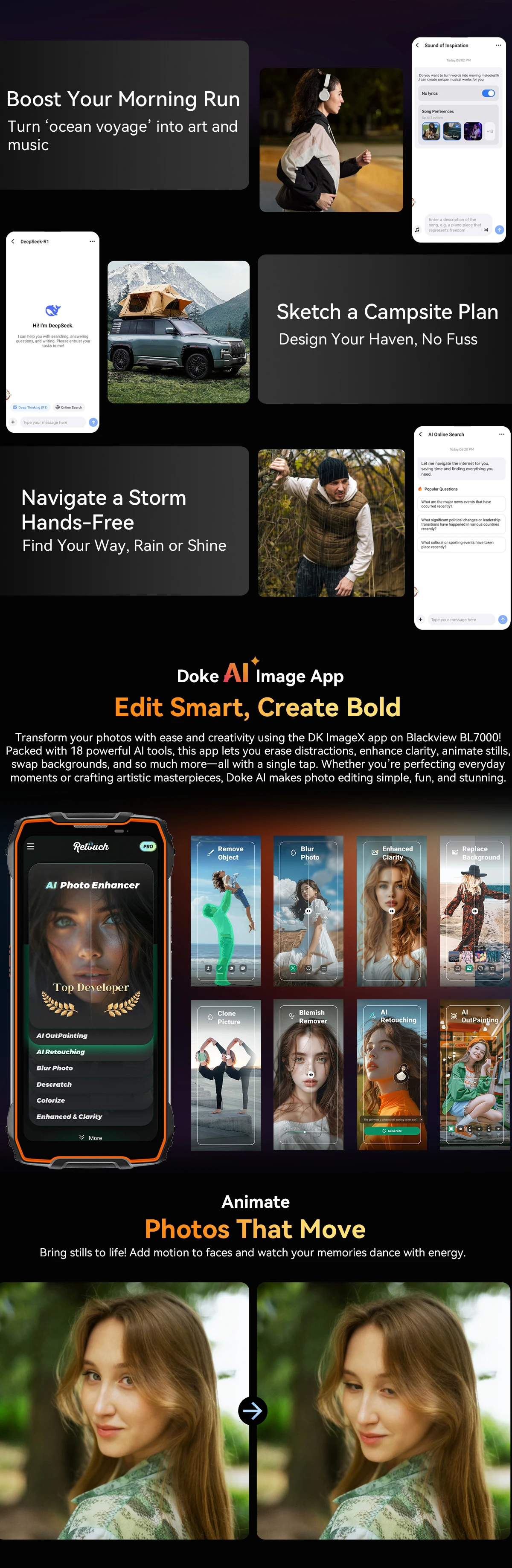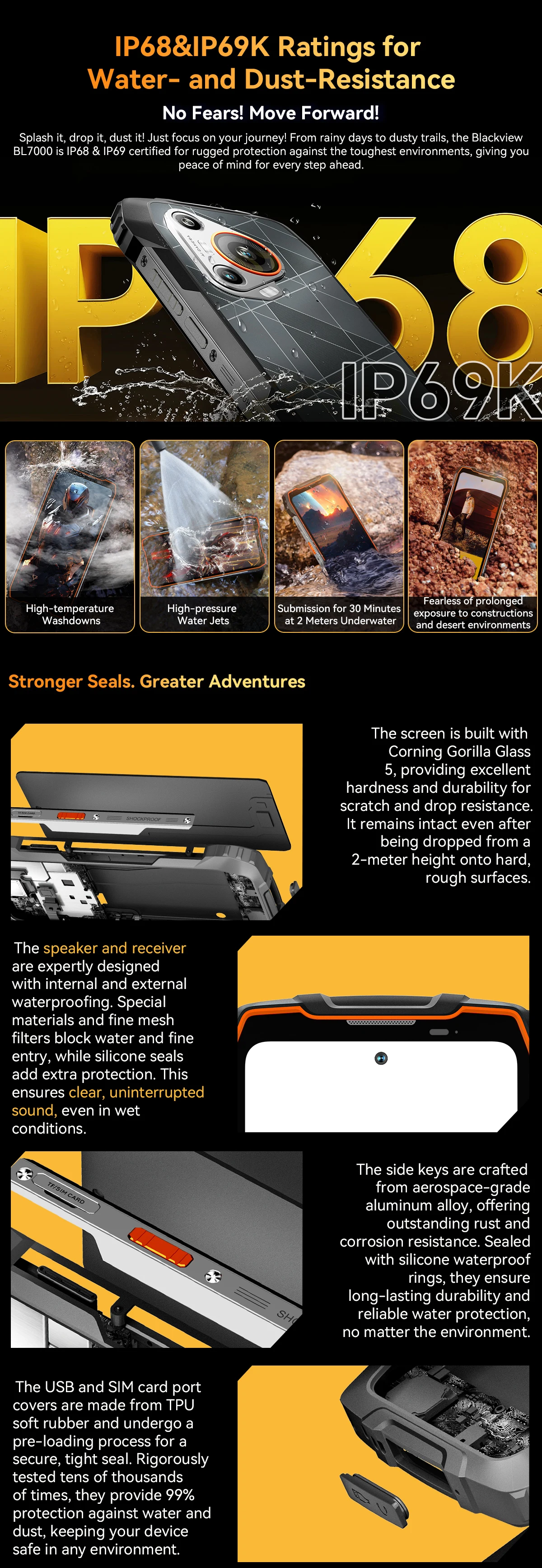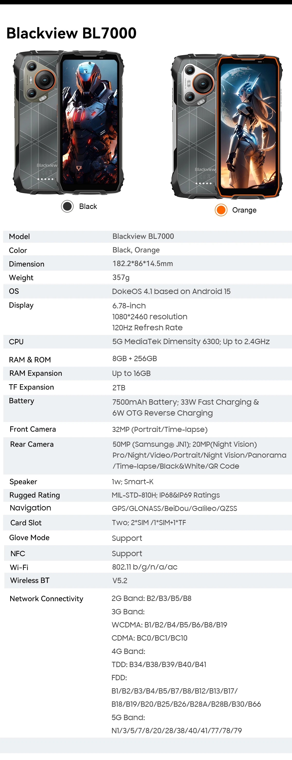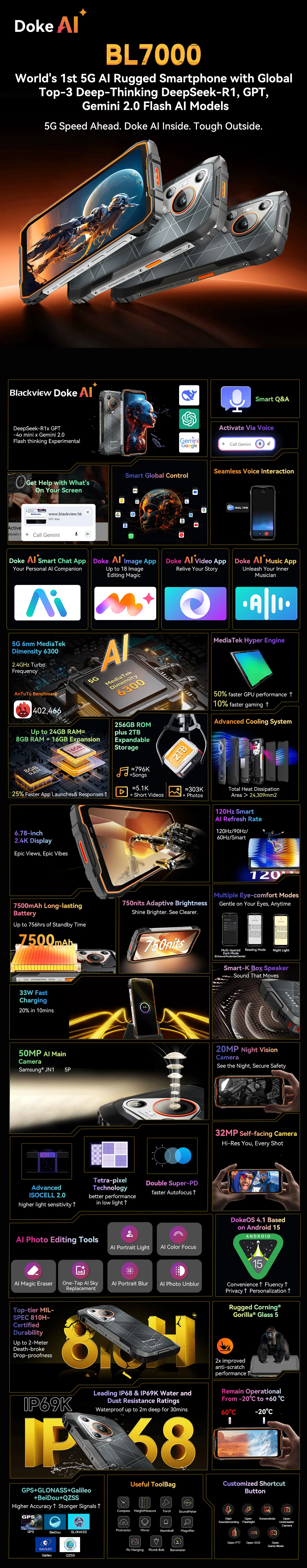 BLACKVIEW BL7000 5G AI Rugged Phone Deepseek GPT Android 15 Smartphone, 6.78" HD+2.4K Display 120Hz, 24(8+16)GB 256GB, 7500Amh