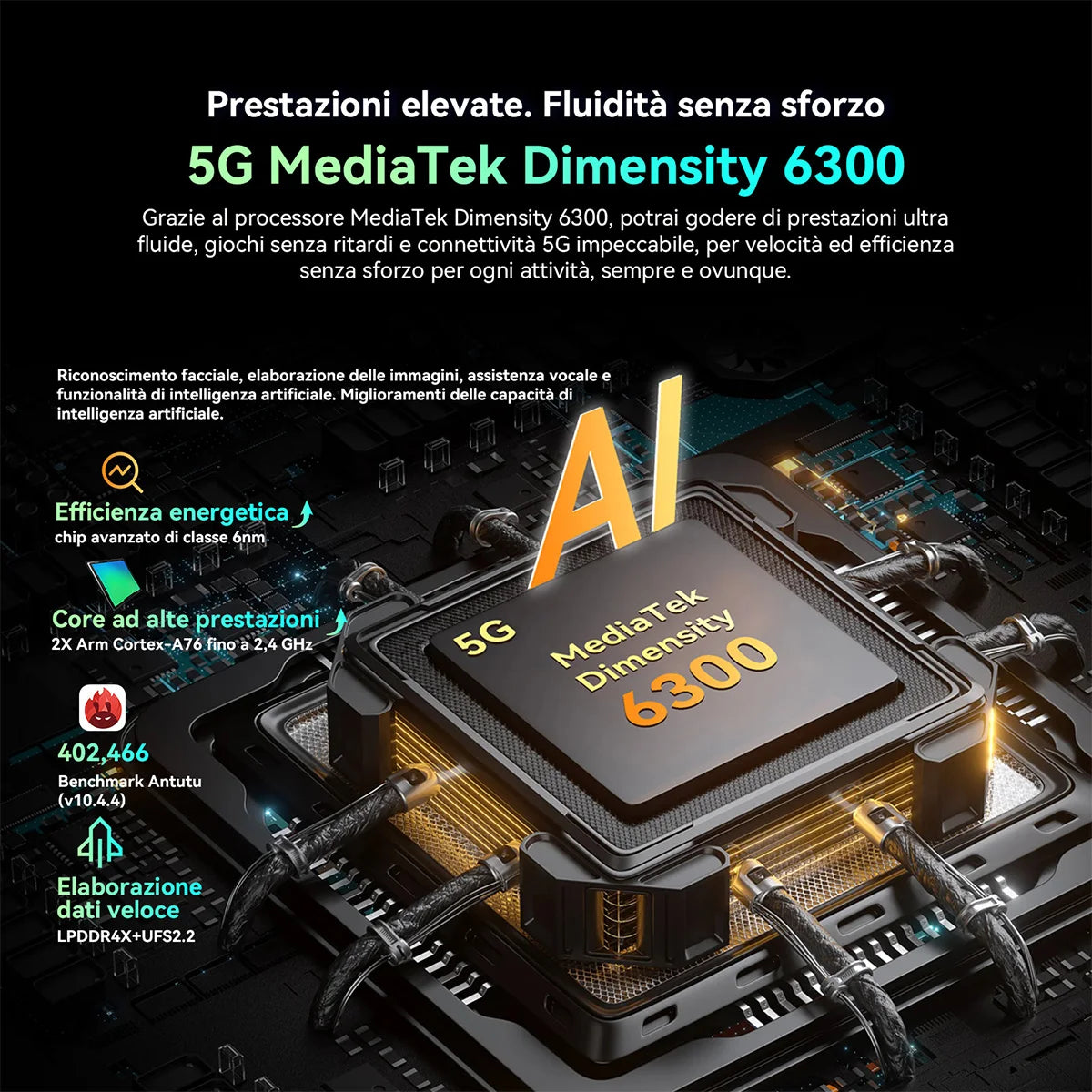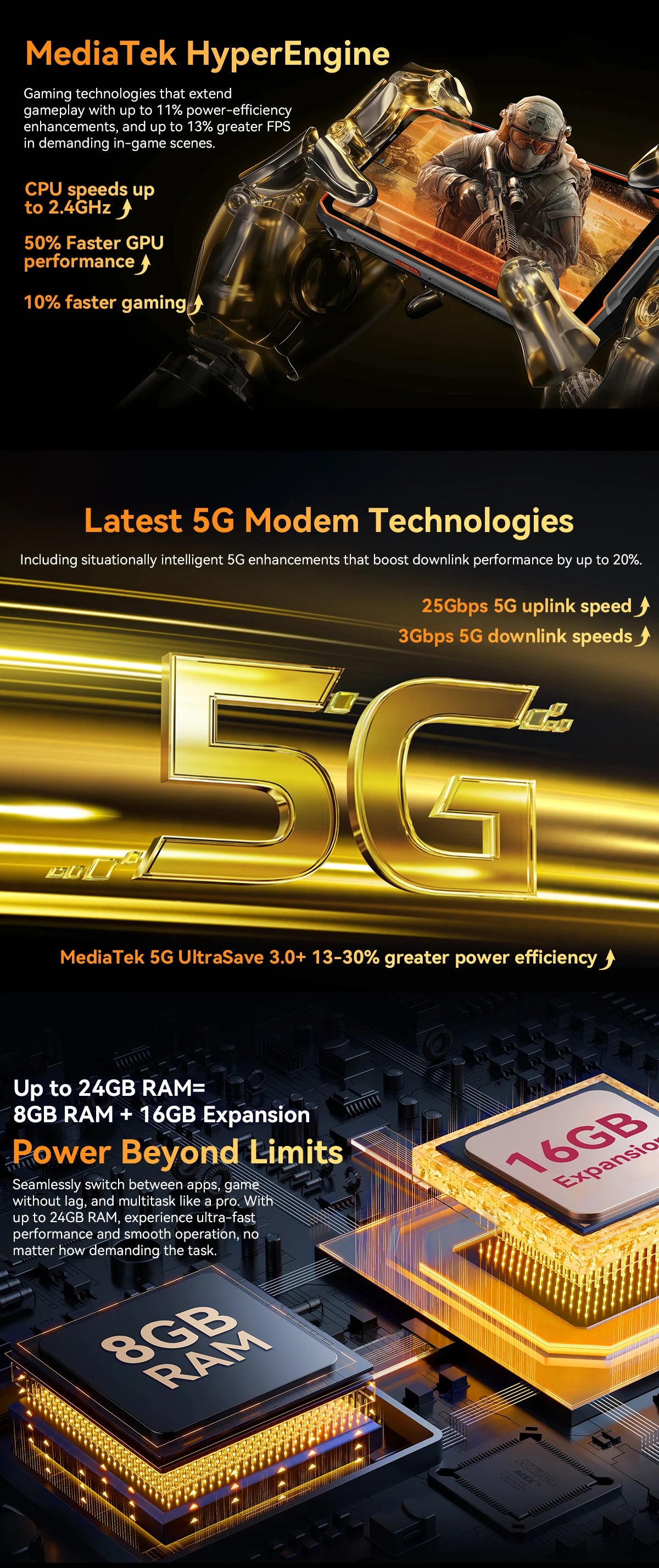 CPU :5G MediaTek Dimensity 6300; Up to 2.4GHZ