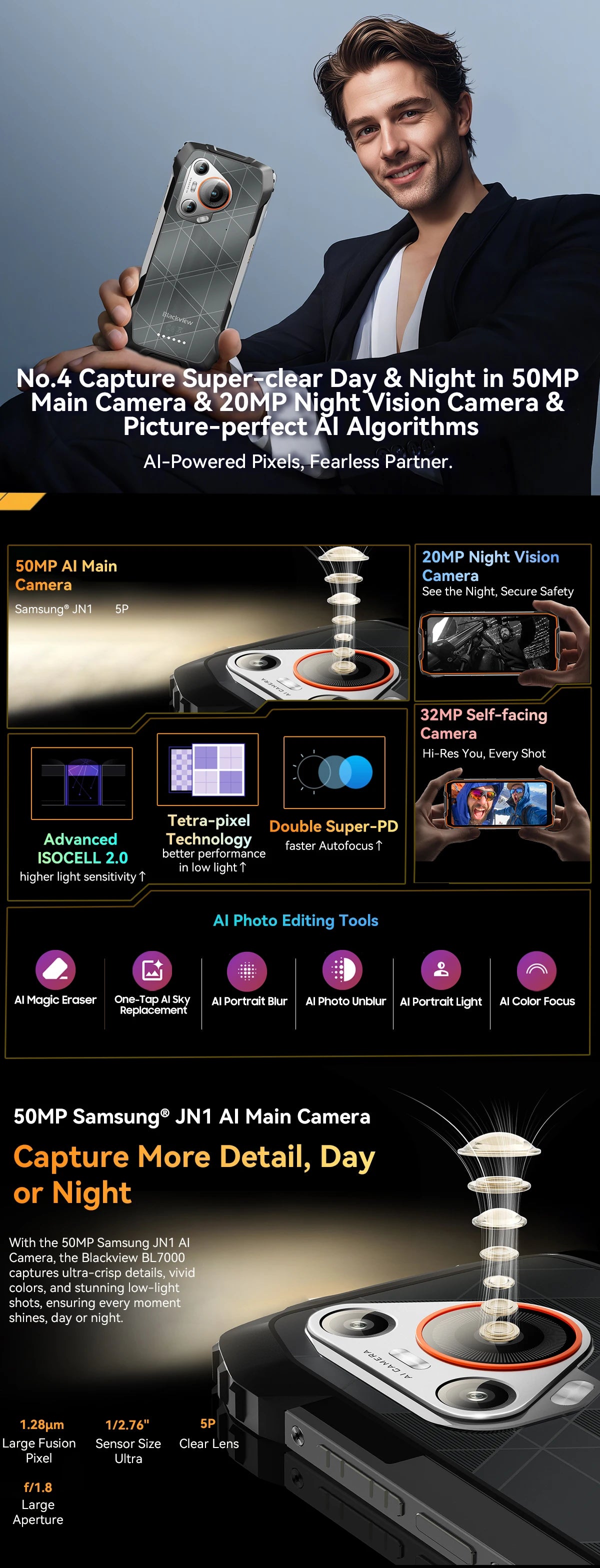 Rear Camera:50MP +20MP Night Vision