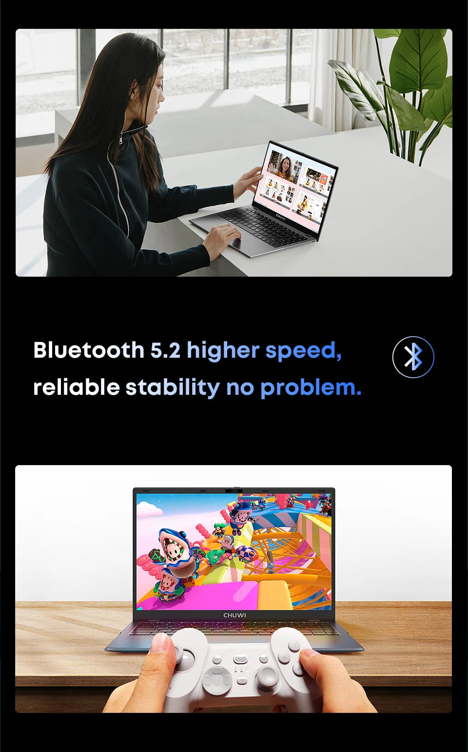 CHUWI GemiBook XPro will inspire you to be more productive at work, school, or entertainment. It's light and stylish, with a beautiful 14.1-inch 1920x1080 IPS display, 2.4G/5G WiFi for a fast connection, and reliability you can count on wherever you start your business. This infinity device is fast, and the battery has enough capacity to get you through your day.