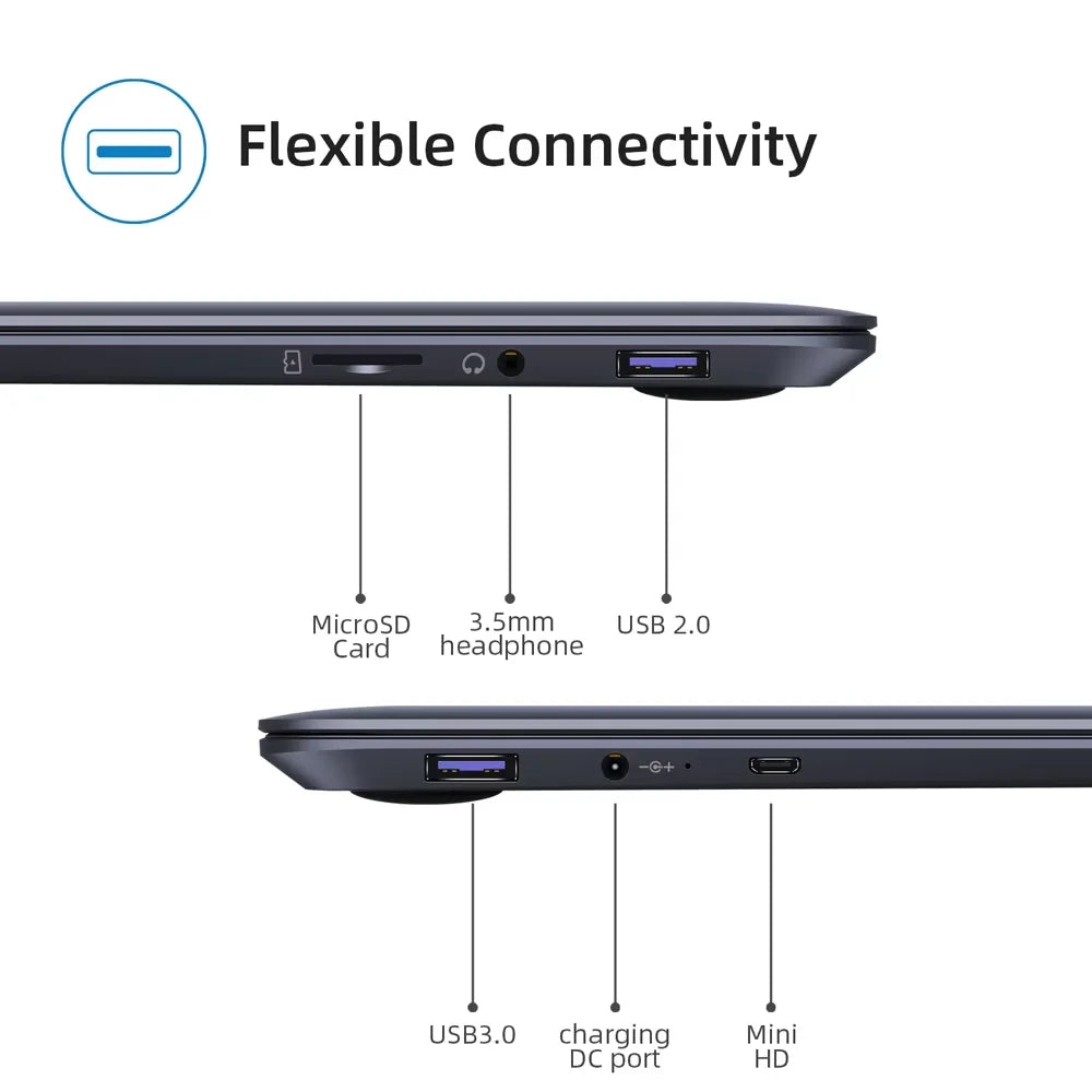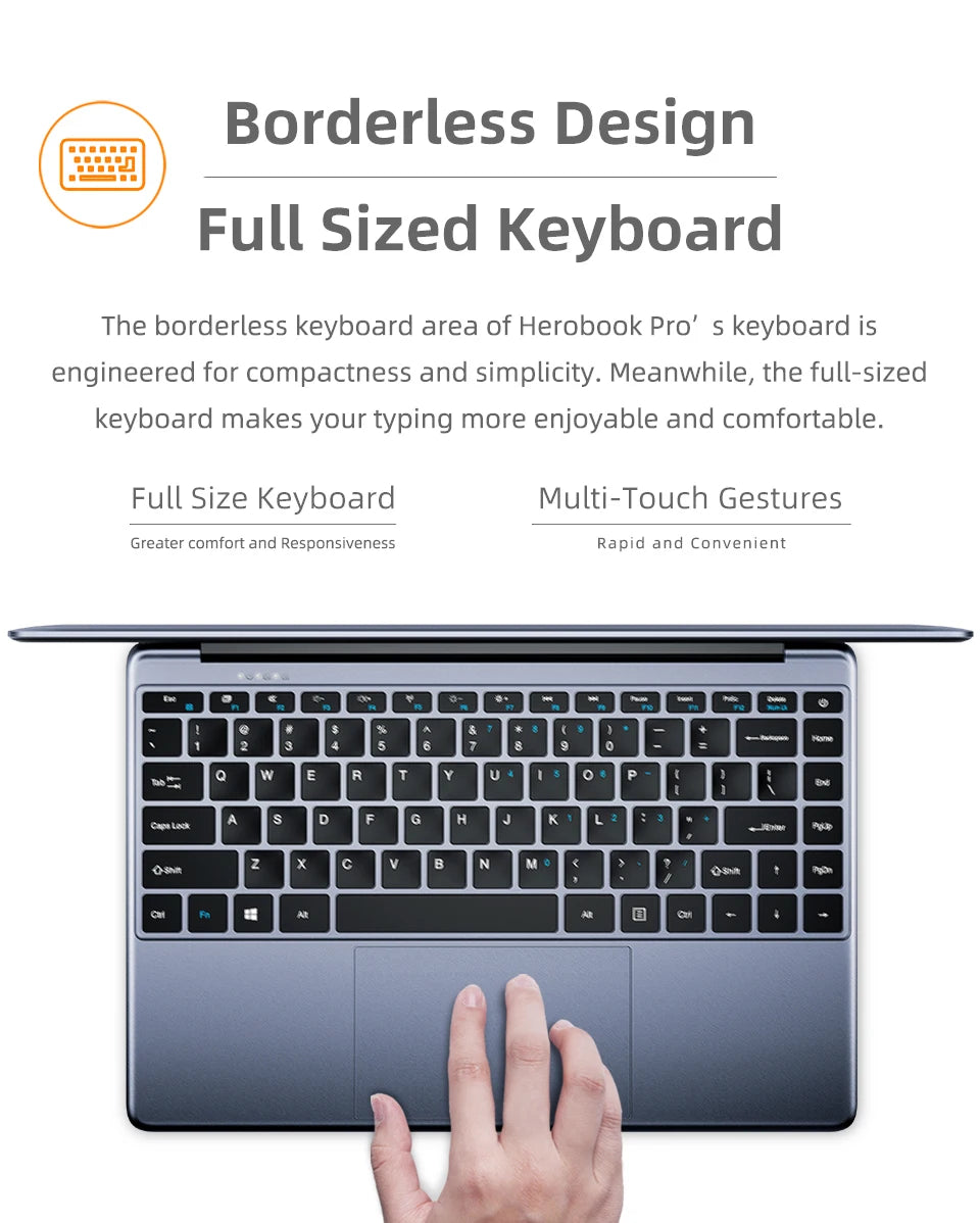 CHUWI HeroBook Pro will inspire you to be more productive at work, school, or entertainment. It's light and stylish, with a beautiful 14.1-inch 1920x1080 IPS display, 2.4G/5G WiFi for a fast connection, and reliability you can count on wherever you start your business. This infinity device is fast, and the battery has enough capacity to get you through your day.