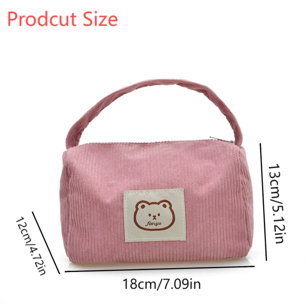 Corduroy Totes Bag Women Ladies Corduroy Shoulder Bag Cute Teddy Bear Pattern Cartoon Embroidery Casual Shoulder Tote
