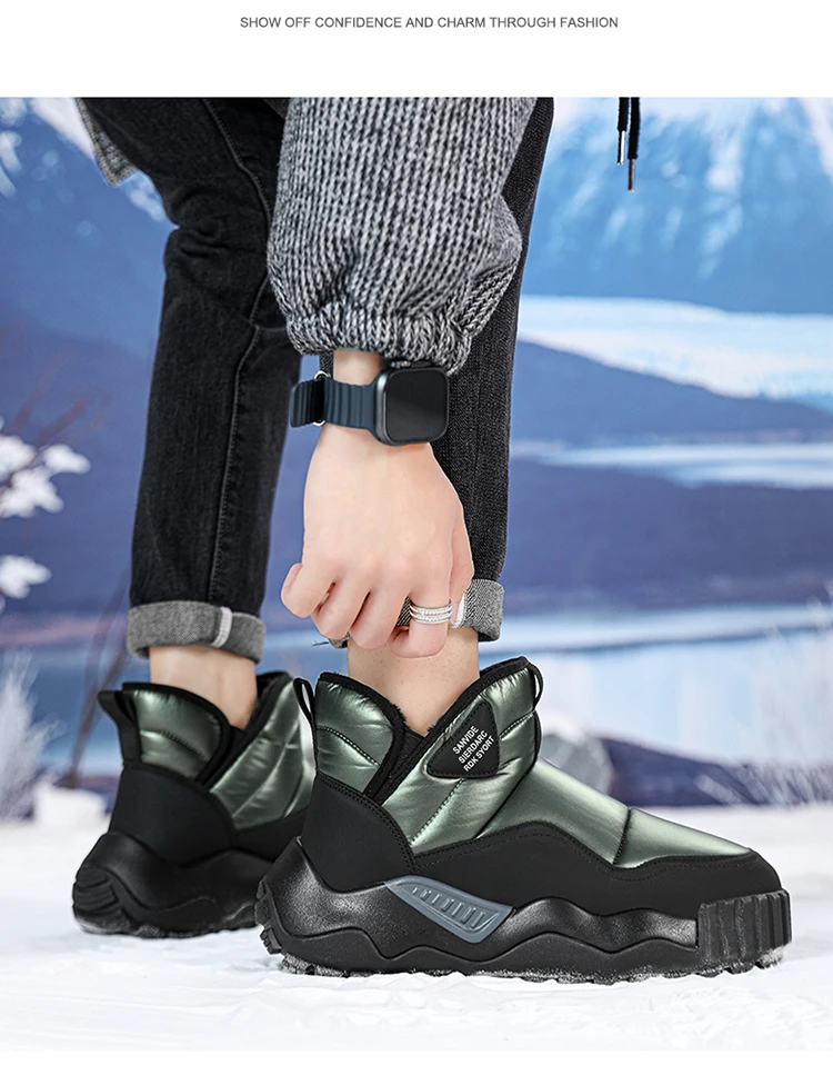 Couple's Slip-on Snow Boots New Man Warm Ankle Boots Outdoor Men's Winter Casual Velvet Thickening PlushCotton Non-Slip Shoes