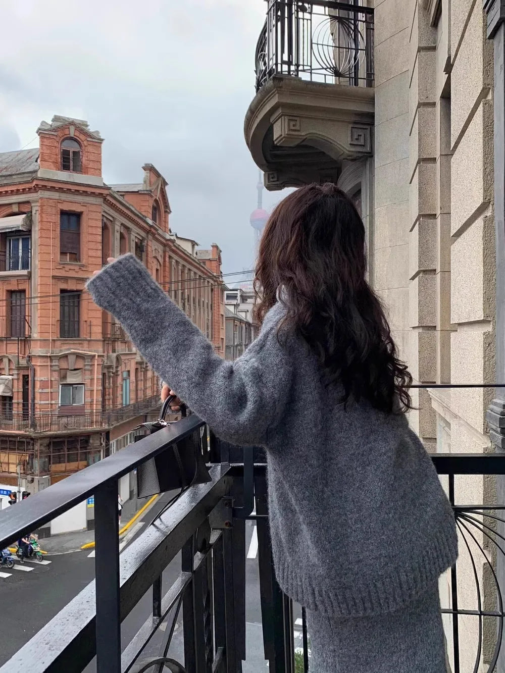 Elegant Solid Sweater Skirts Suits for Women Autumn Winter Fashion V-Neck Pullover Knitted Top Loose Skirt Casual Two Pieces Set