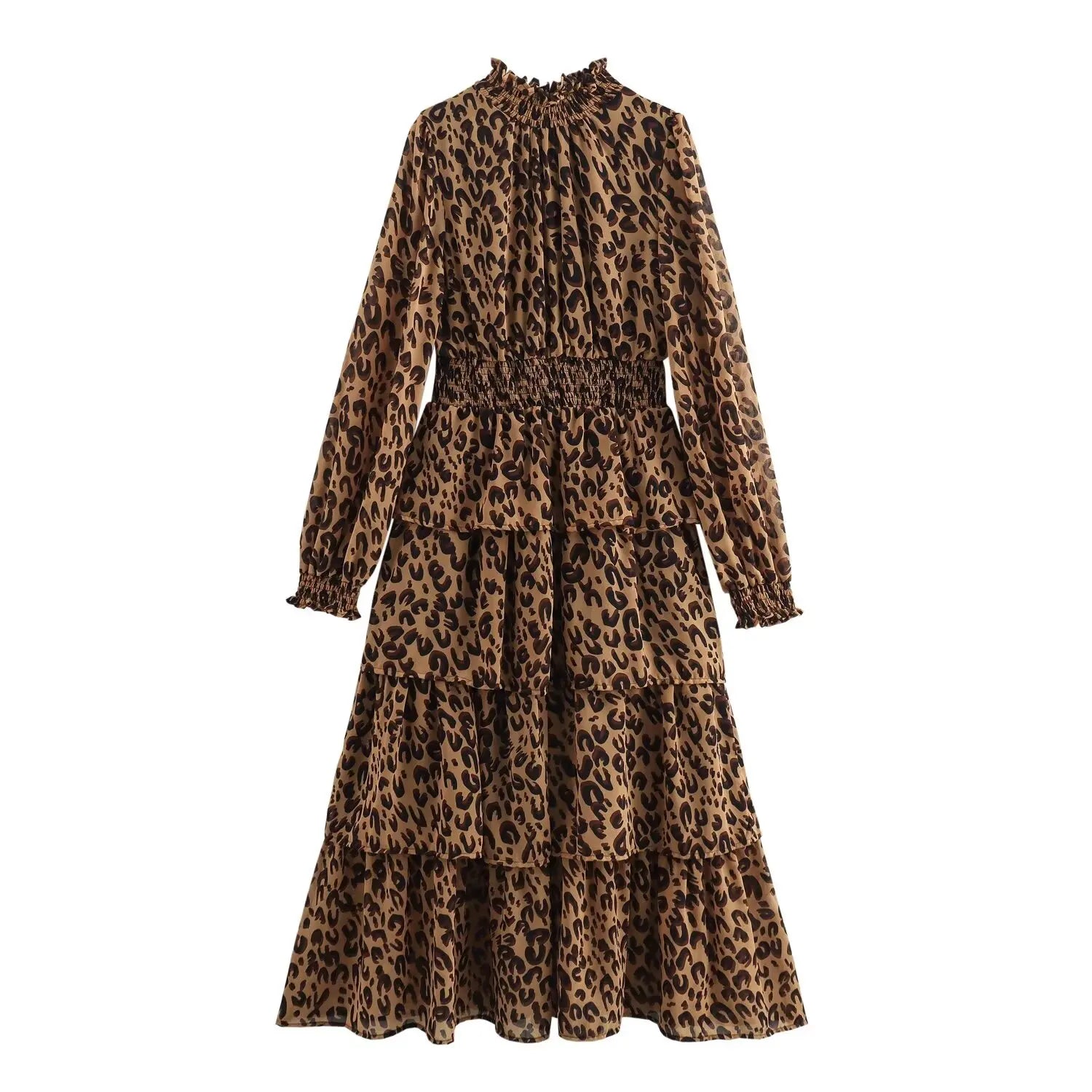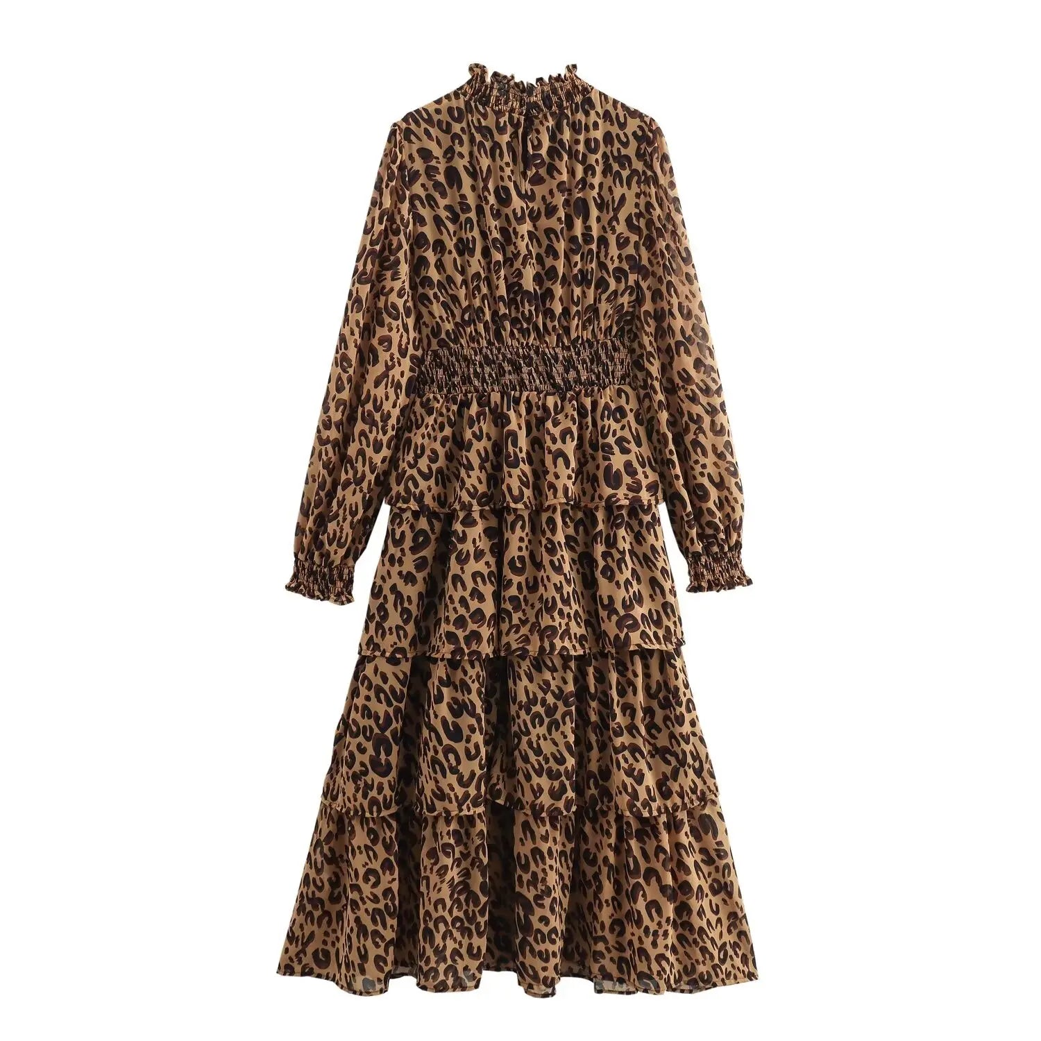 European and American style women's clothing new 2024 fashion retro leopard print long slim temperament dress
