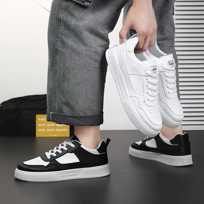 Fashion Leather Men Casual Shoes Lightweight Running Shoes Platform White Sneakers Outdoor Breathable Sport Shoes Tennis Shoes