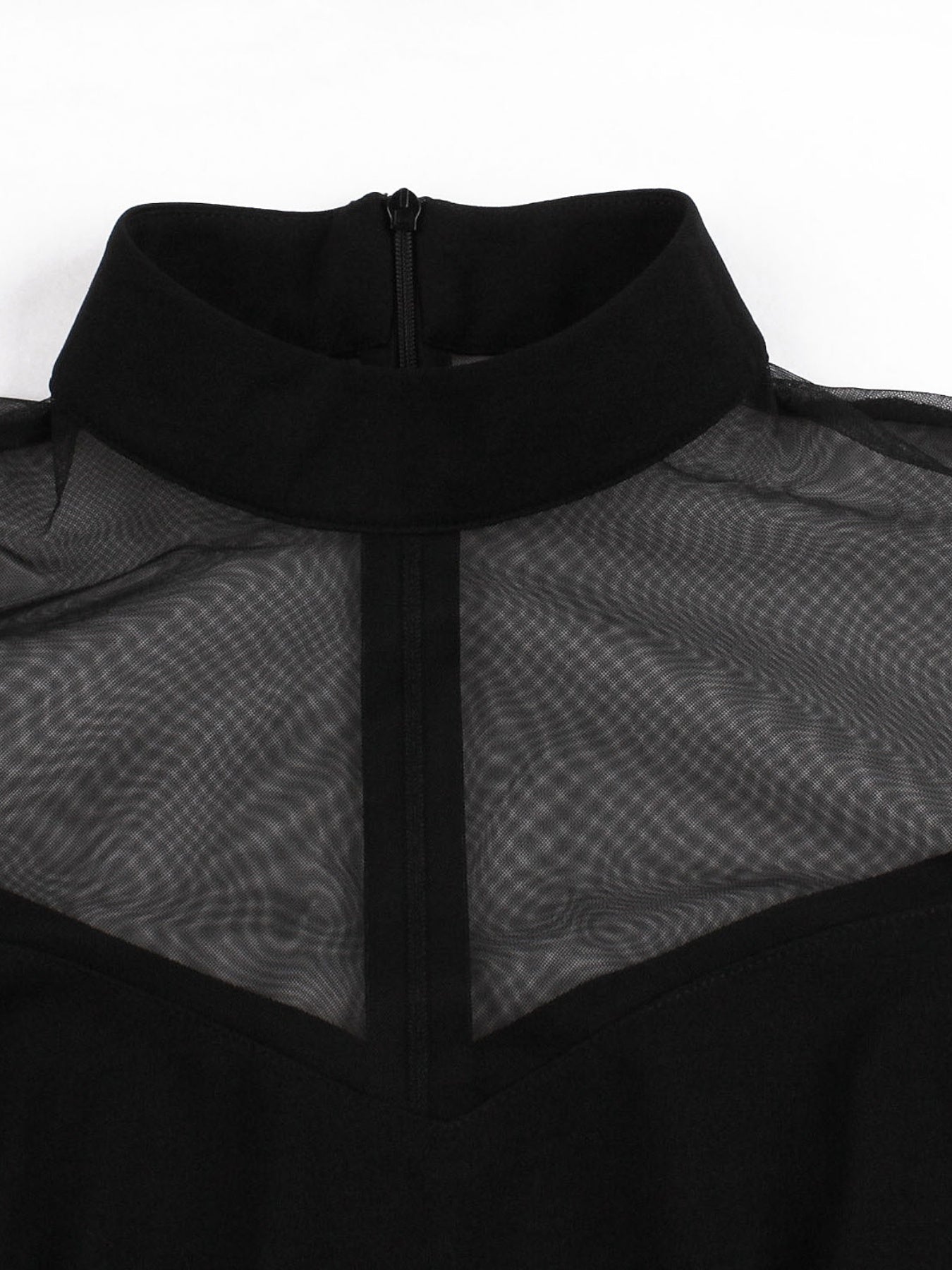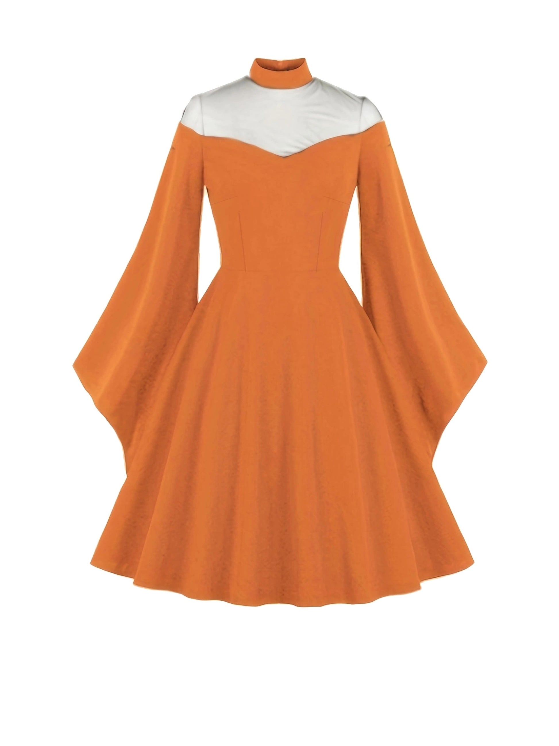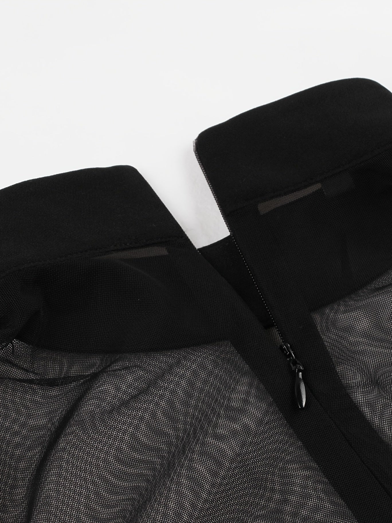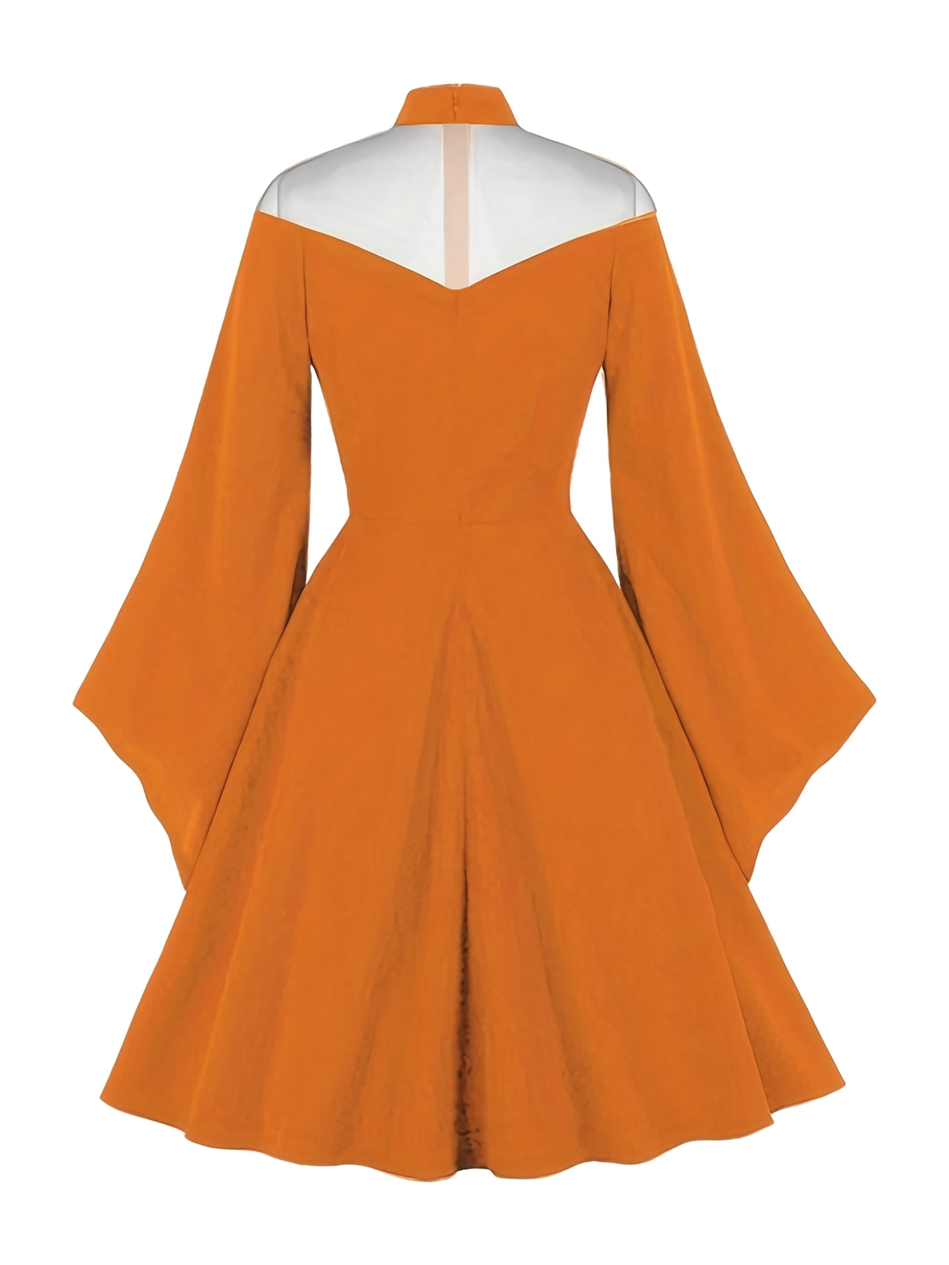 Halloween Black Queen Mesh Trumpet Sleeve Dress, Solid Retro Zip Back Dress, Women's Clothing