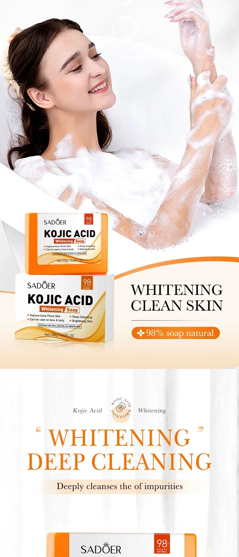 Handmade Whitening Soap Skin Care Deep Cleaning Moisturizing Cleansing Essential Temperate Soap Brighten Skin Kojic Acid Soap