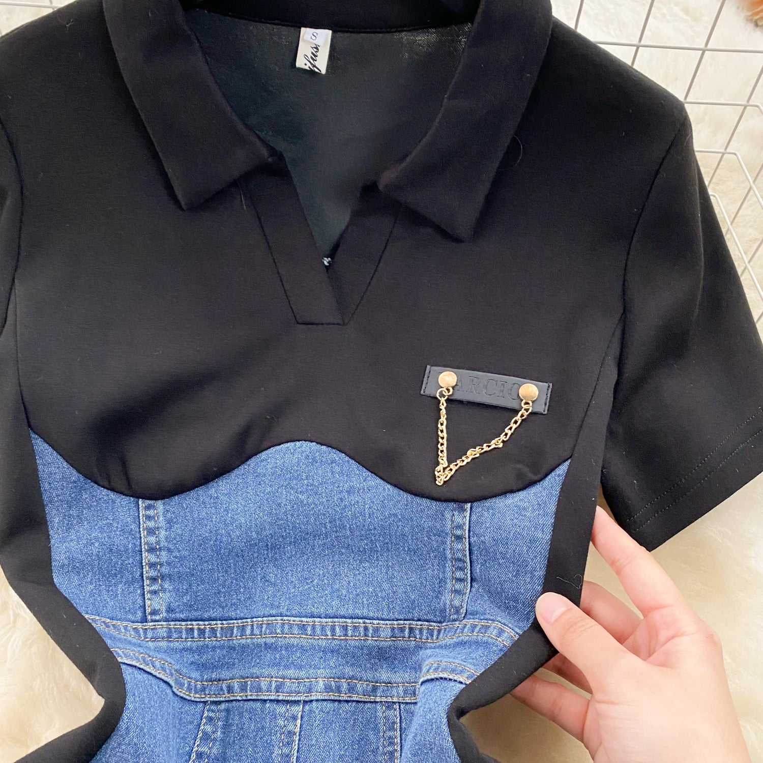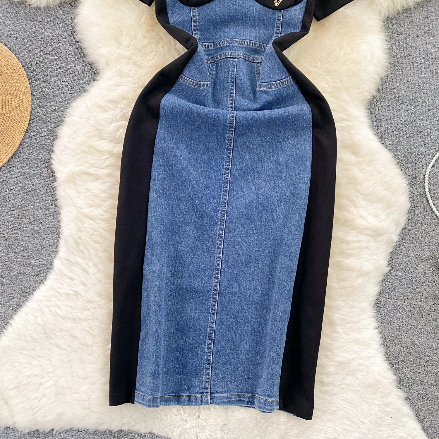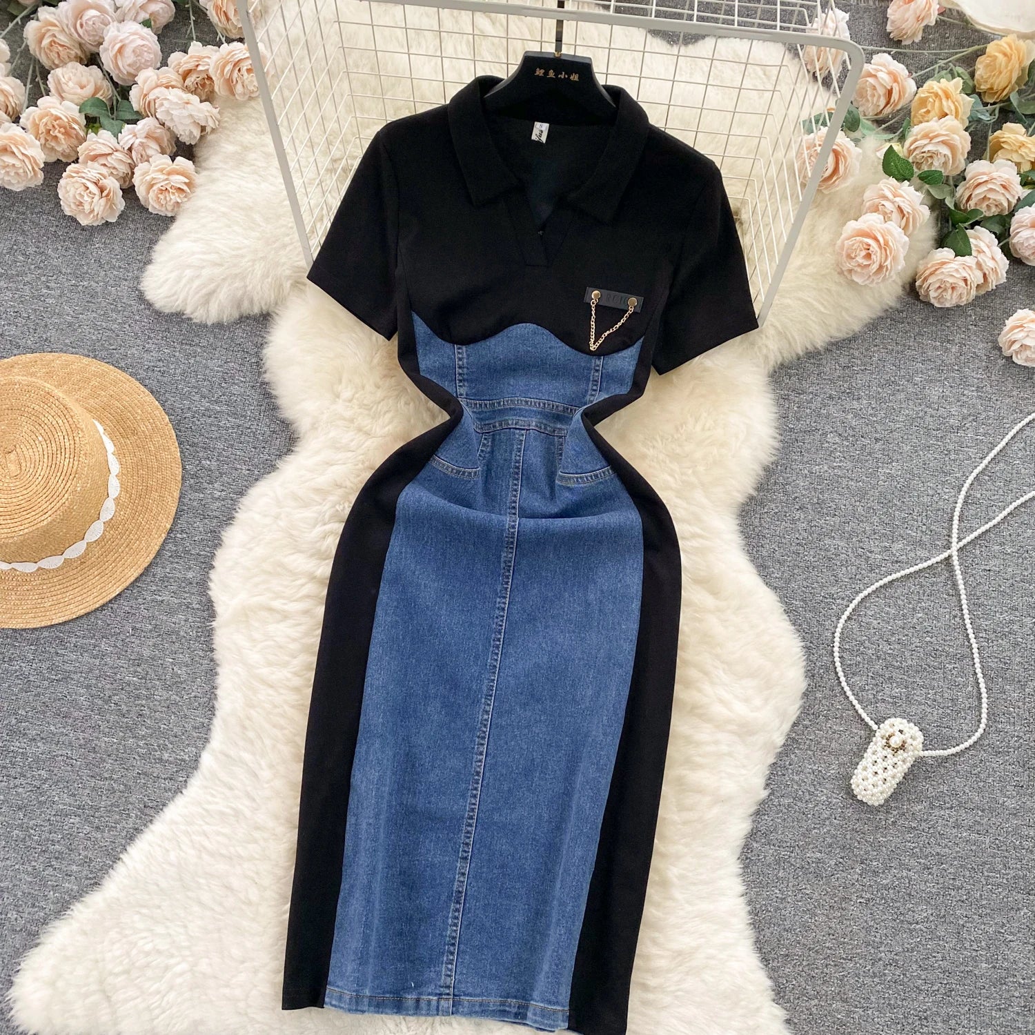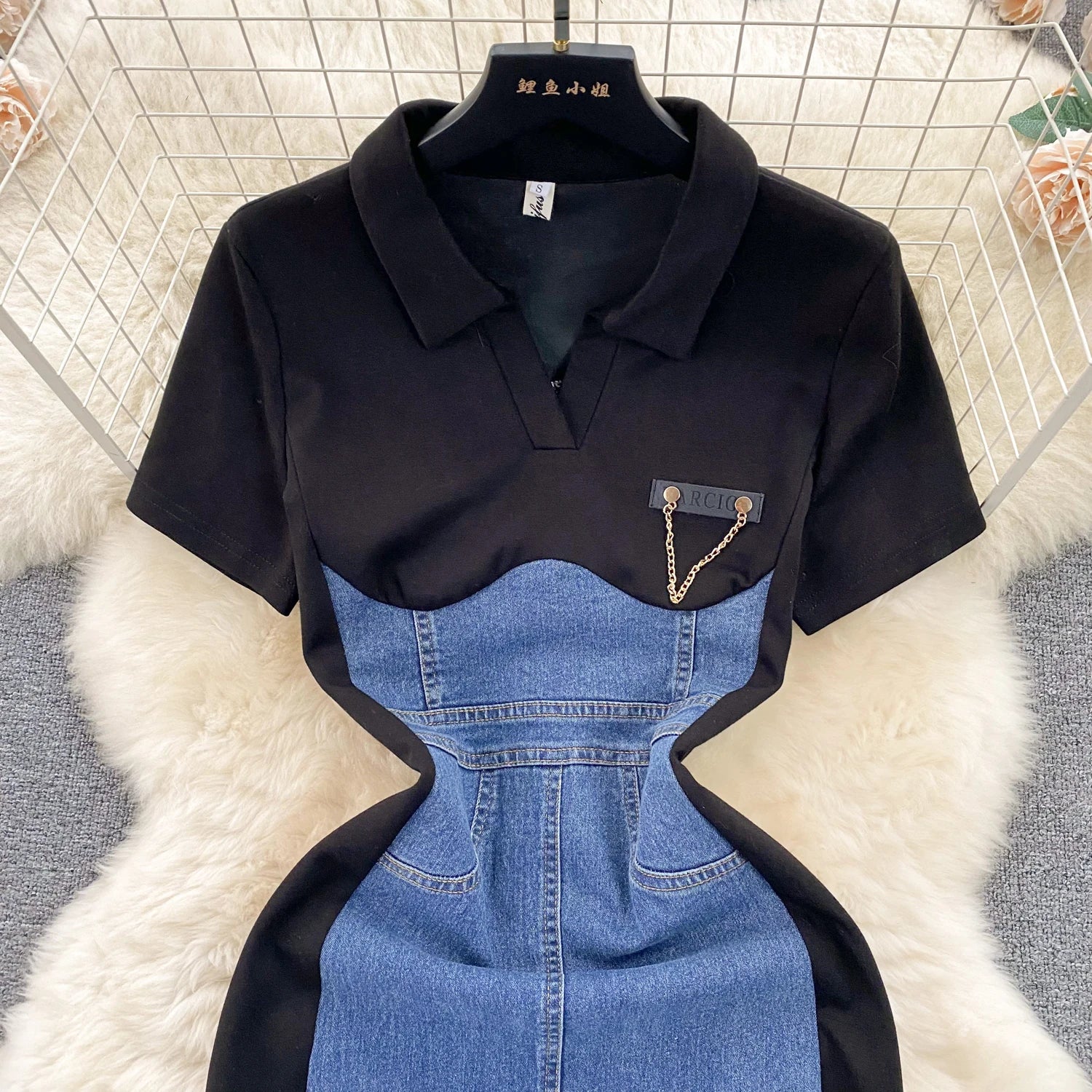 High Waist Bodycon Vestidos Mujer Women 2025 Dresses Contrast Fake Two Piece Dress Casual Fashion Vestido Temperament Robes