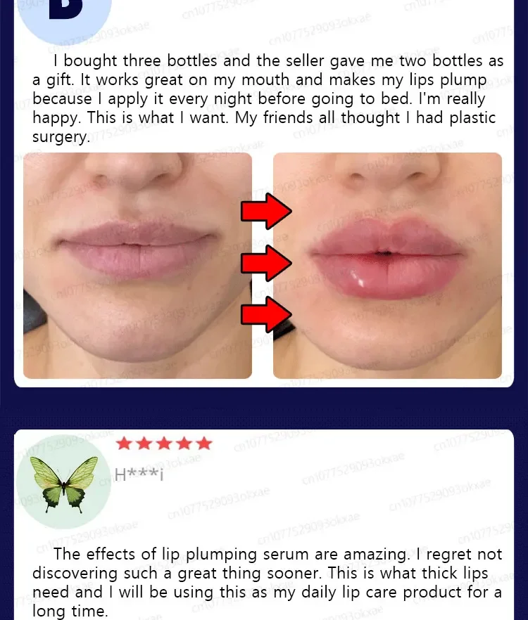 Quickly and permanently plumps lips, increases lip elastic cell regeneration, reduces fine lines, anti-aging and repairs lips, making lips fuller, suitable for lips of all skin colors. Can be used by men, women, and pregnant women.