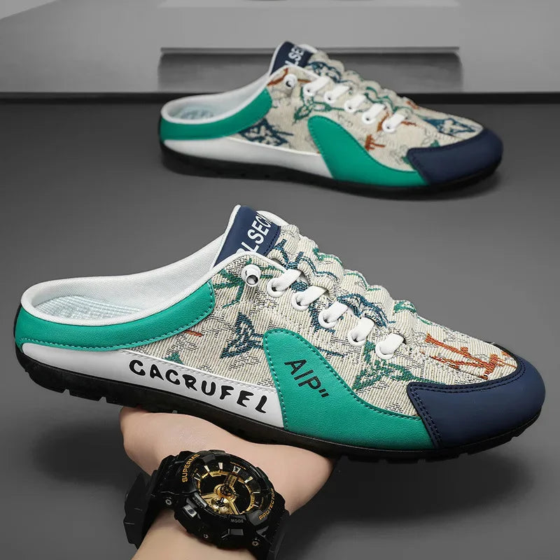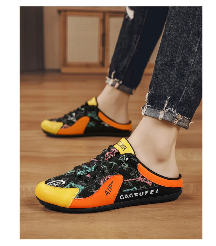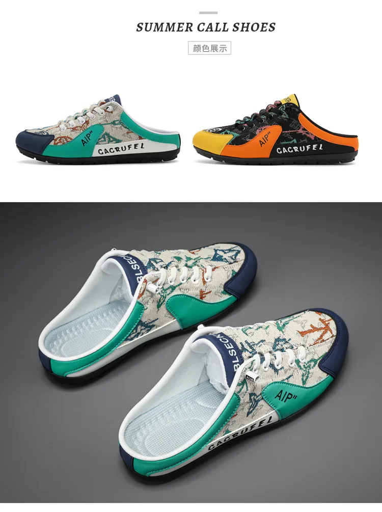 Men Non-slip Vulcanize Shoes Fashion Half Slippers Mesh Cloth Shoes for Man Casual Shoe Male Comfortable Flat Footwear 2025