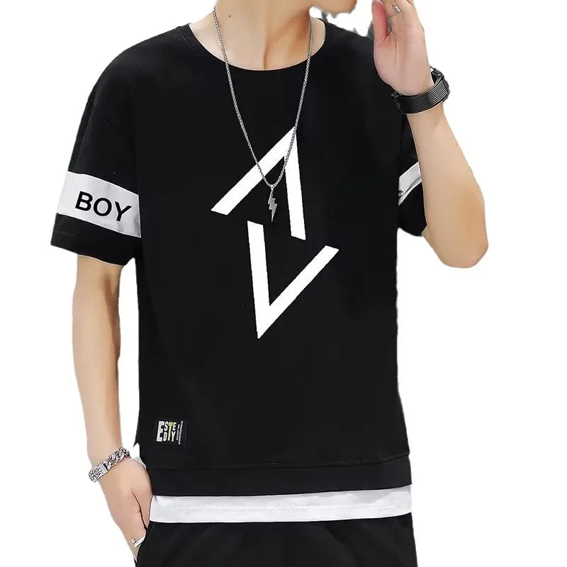 男士夏季薄款短袖休閒褲運動套裝寬鬆半袖T卹一件套中國大陸產