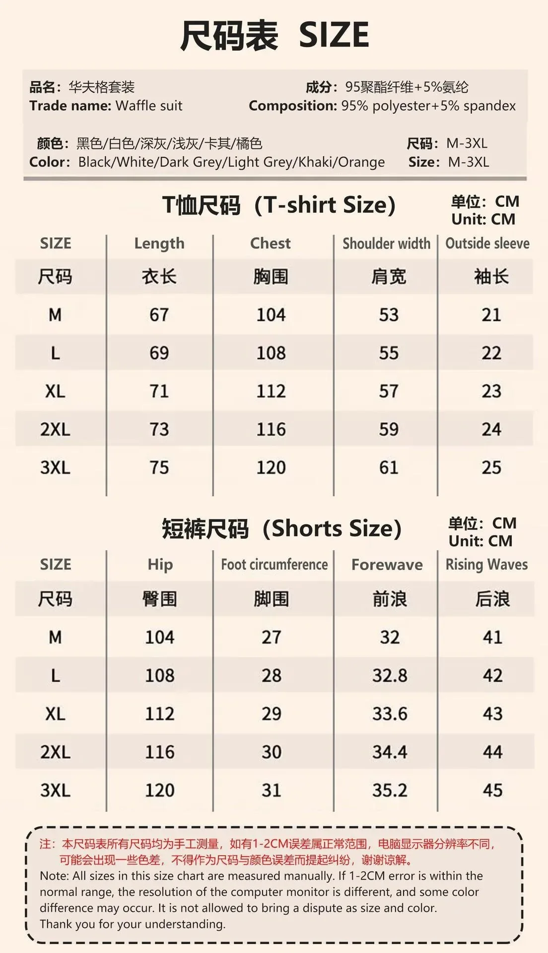 男士夏季華夫格套裝,高品質時尚休閒T卹+短褲套裝,男士運動服
