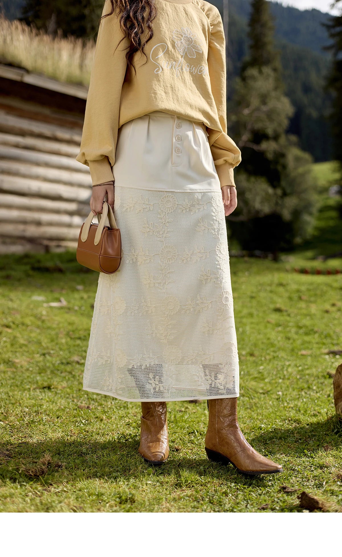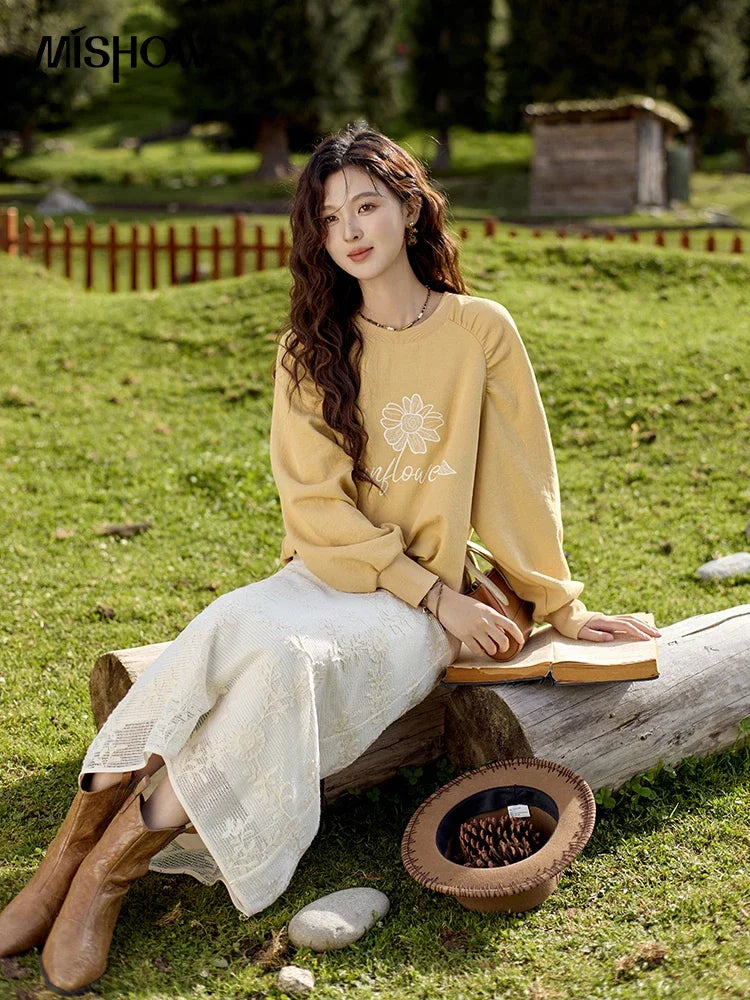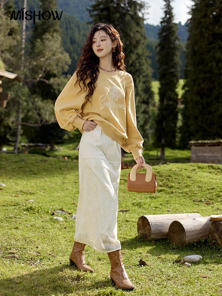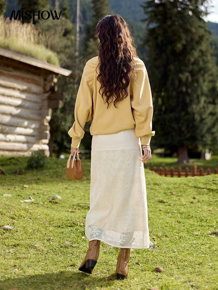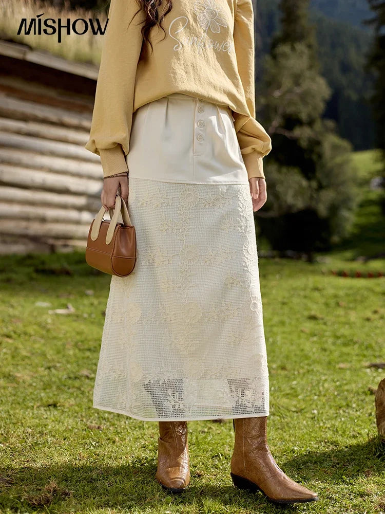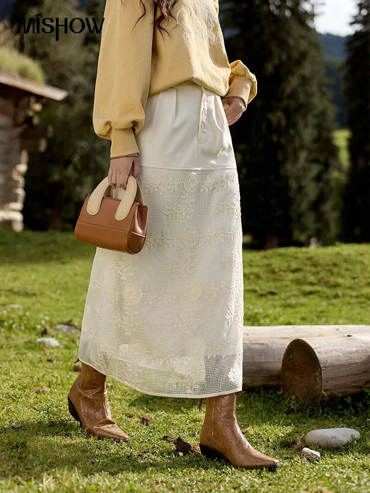 MISHOW Lace Embroidery Patchwork Fake Two-piece Skirt for Women 2024 Versatile Slim A-line Skirt Elegant Ruffle Skirt MPD42B0476