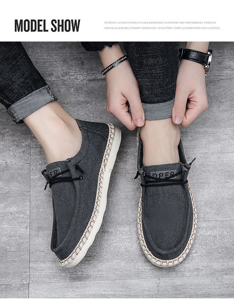 New Men Plus Size Casual Denim Canvas Shoes Flat Vulcanize Shoes Fashion British Designer Breathable Light Men Sneakers Loafers
