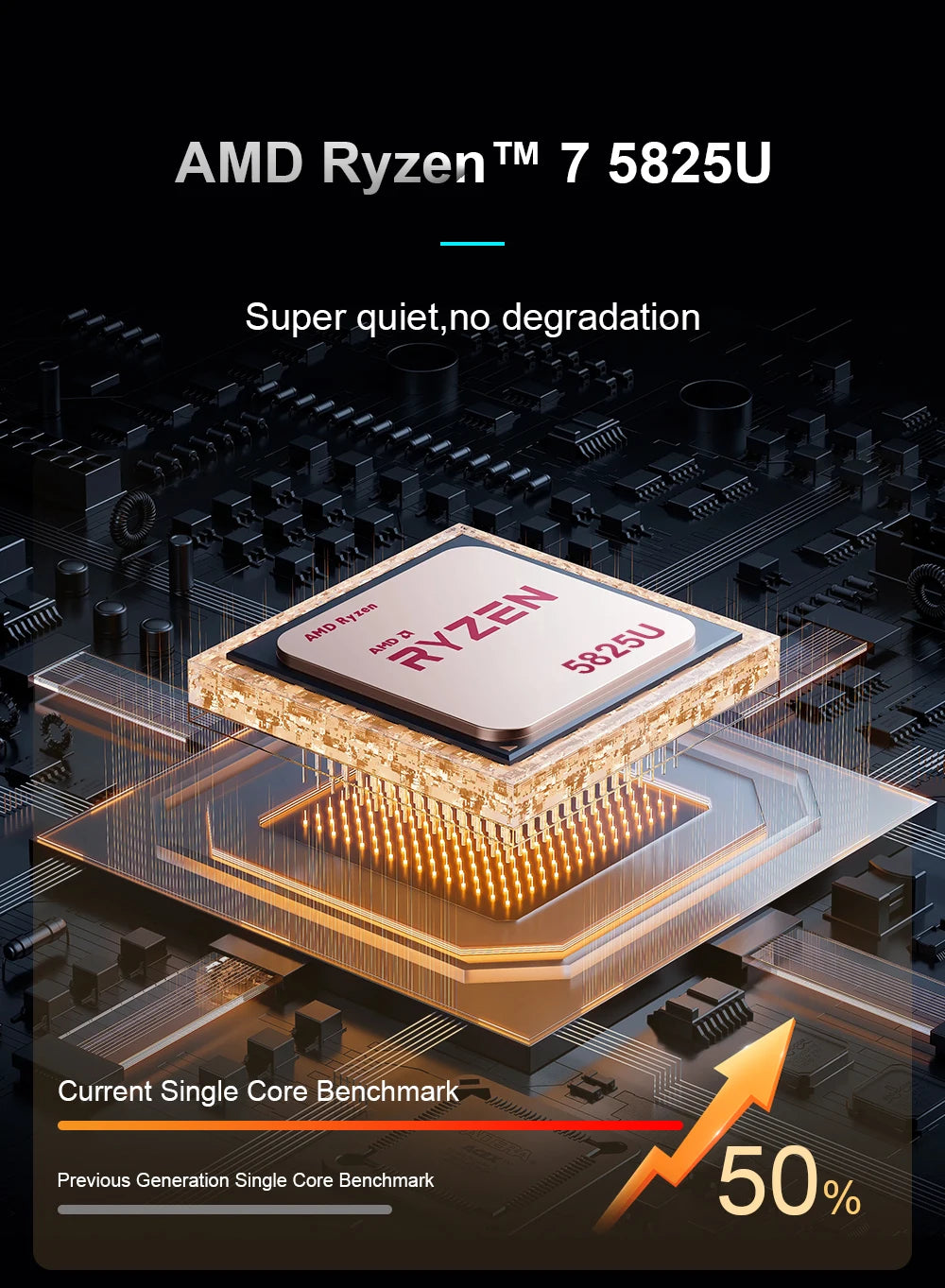 laptop comes with AMD Ryzen 7 5825U processing with 8 cores and 16 threads at 4.3Ghz. It can easily run various office software and some games.