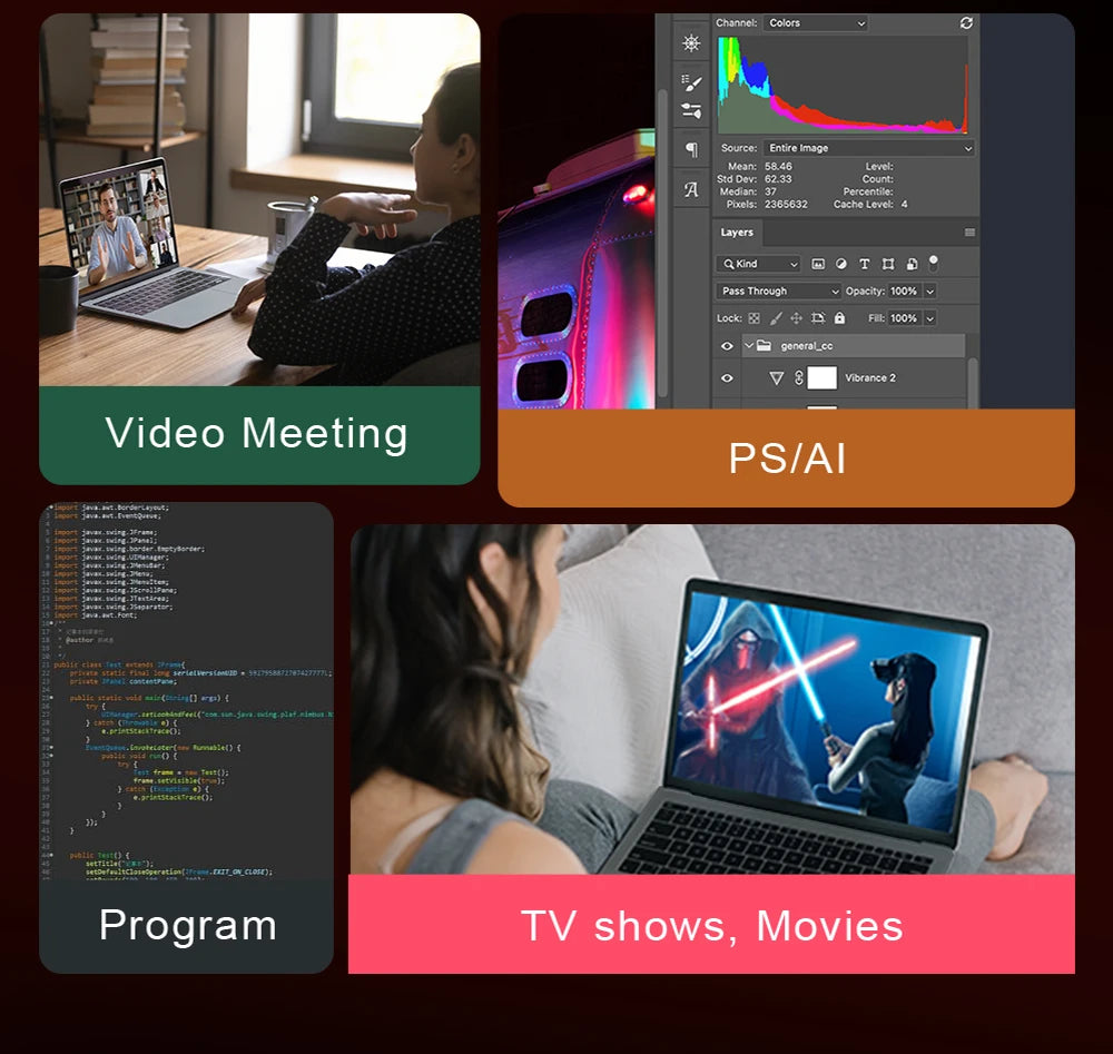 offers a delightfully vibrant display that delivers stunning color accuracy and detailed images that also can help reduce eye strain from long work hours.