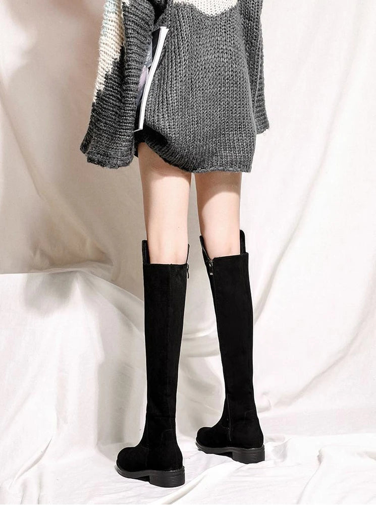 Shoes for Woman Middle Heel Footwear Winter Knee High Shaft Women's Boots Long Flat Gothic Spring Autumn Demi-season Quality Hot