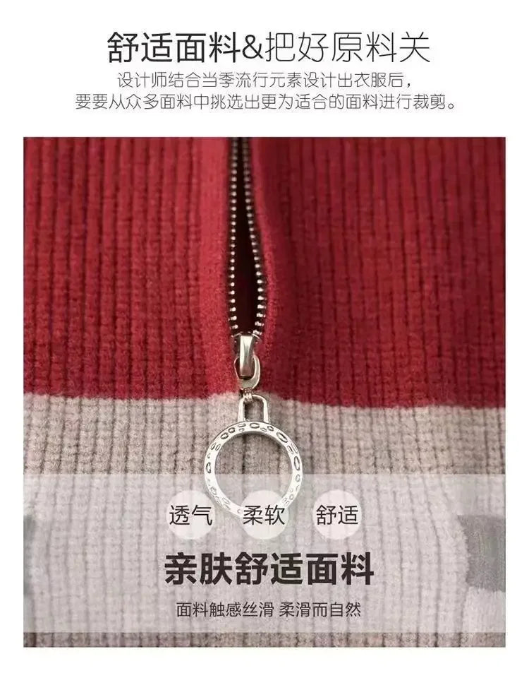Sping Autumn New Women Sweaters Coats Stand Collar Zipper Contrast Color Pocket Fashion All-match Long Sleeve Cardigan Knit Tops