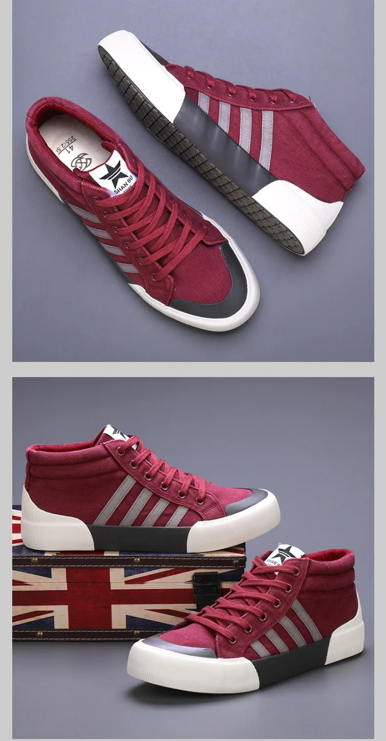 Spring Classic Stripes Black Canvas Sneakers Men Comfort High Top Skate Shoes Men Espadrilles Non-Slip Flat Vulcanized Shoes Men