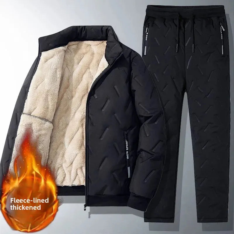 加厚抓絨衣男士冬季外套褲子套裝羊皮絨中老年棉衣爸爸裝中老年棉衣服